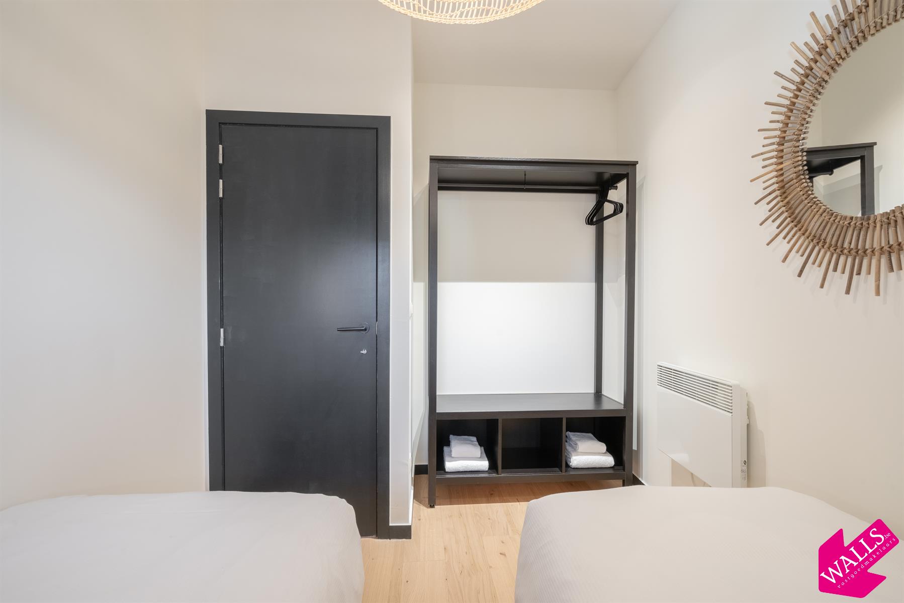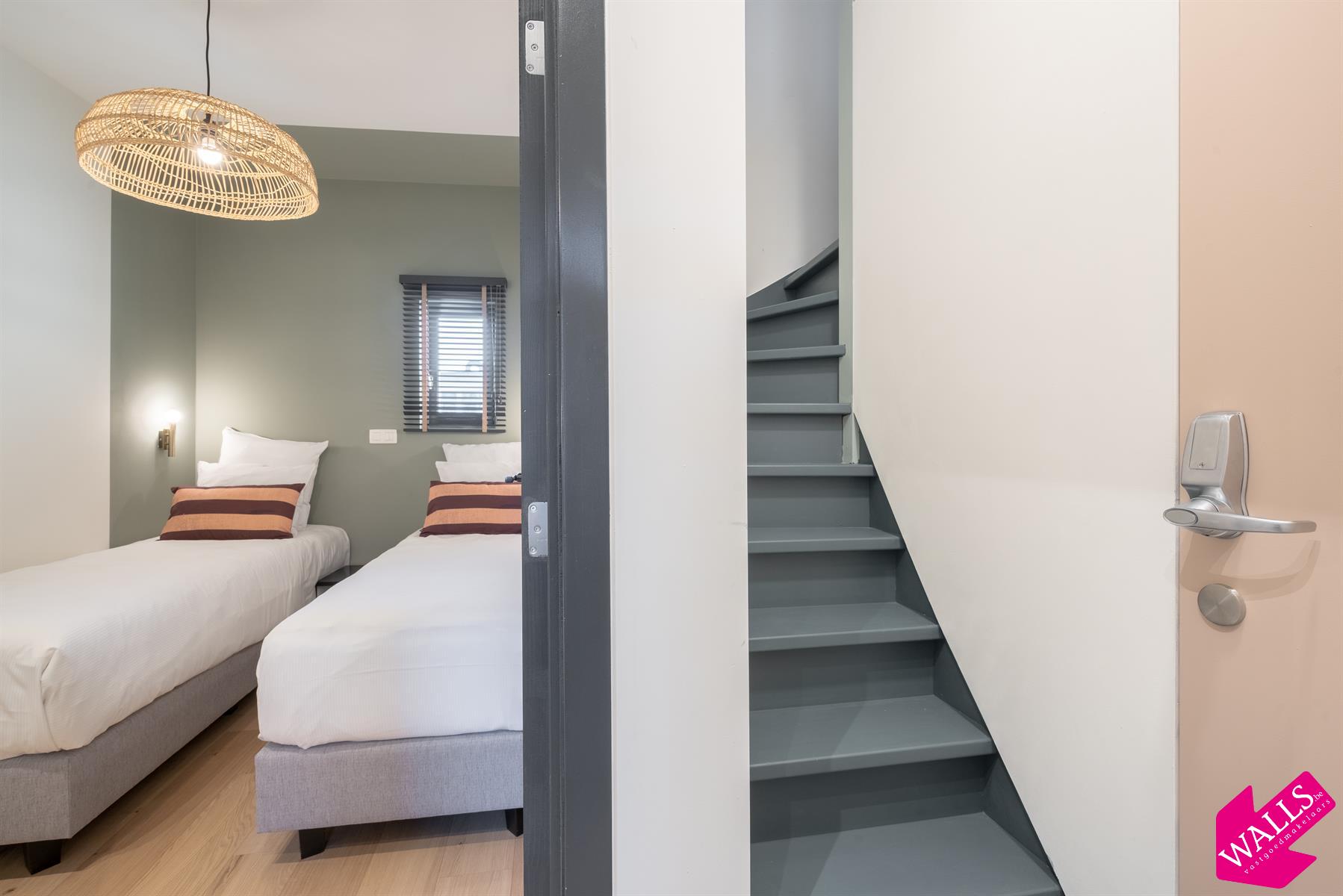 Dit gemeubileerde duplex appartement is gelegen op de derde verdieping van dit in 2018 gerenoveerde gebouw en wordt verhuurd voor een korte termijn vanaf 1 maand tot en met 3 maanden. Het appartement heeft een oppervlakte van 80 vierkante meter. Wanneer u het appartement betreedt, komt u terecht in de hal met toegang tot beide slaapkamers. Ook hier bevindt zich de badkamer met wastafel en toilet en een aparte grote regendouche. Slaapkamer 1 bevindt zich aan de voorzijde van het gebouw en bestaat uit een boxspring bed van 160 cm breed en 200 cm lang inclusief twee hoofdkussens en donsdeken. Deze slaapkamer bevat ook een ruime kledingkast en een flatscreen TV met Netflix en gewenste zenders. Slaapkamer 2 bevindt zich aan de achterzijde van het gebouw en bestaat uit een open kledingkast en twee enkele bedden, beide voorzien van een hoofdkussen en donsdeken. Via een kleine trap in het appartement betreedt u de ruime living met een twee-persoons zetel, twee zeer comfortabele leren fauteuils, een grote eettafel met vier stoelen, een open keuken en nog een apart toilet. De keuken bestaat uit een koelkast met vriesvak, een 2-pits keramische kookplaat, een vaatwasser, een combi-oven, een Nespresso koffiemachine, een waterkoker, en een uitgebreid assortiment aan tafel- en kookgerei. Strijkijzer en strijkplank zijn aanwezig. De verhuurder biedt u een wekelijkse linnenservice aan en gas/water/licht/TV/Wifi zijn bij de prijs inbegrepen. Domicilie mogelijk afhankelijk van de termijn.