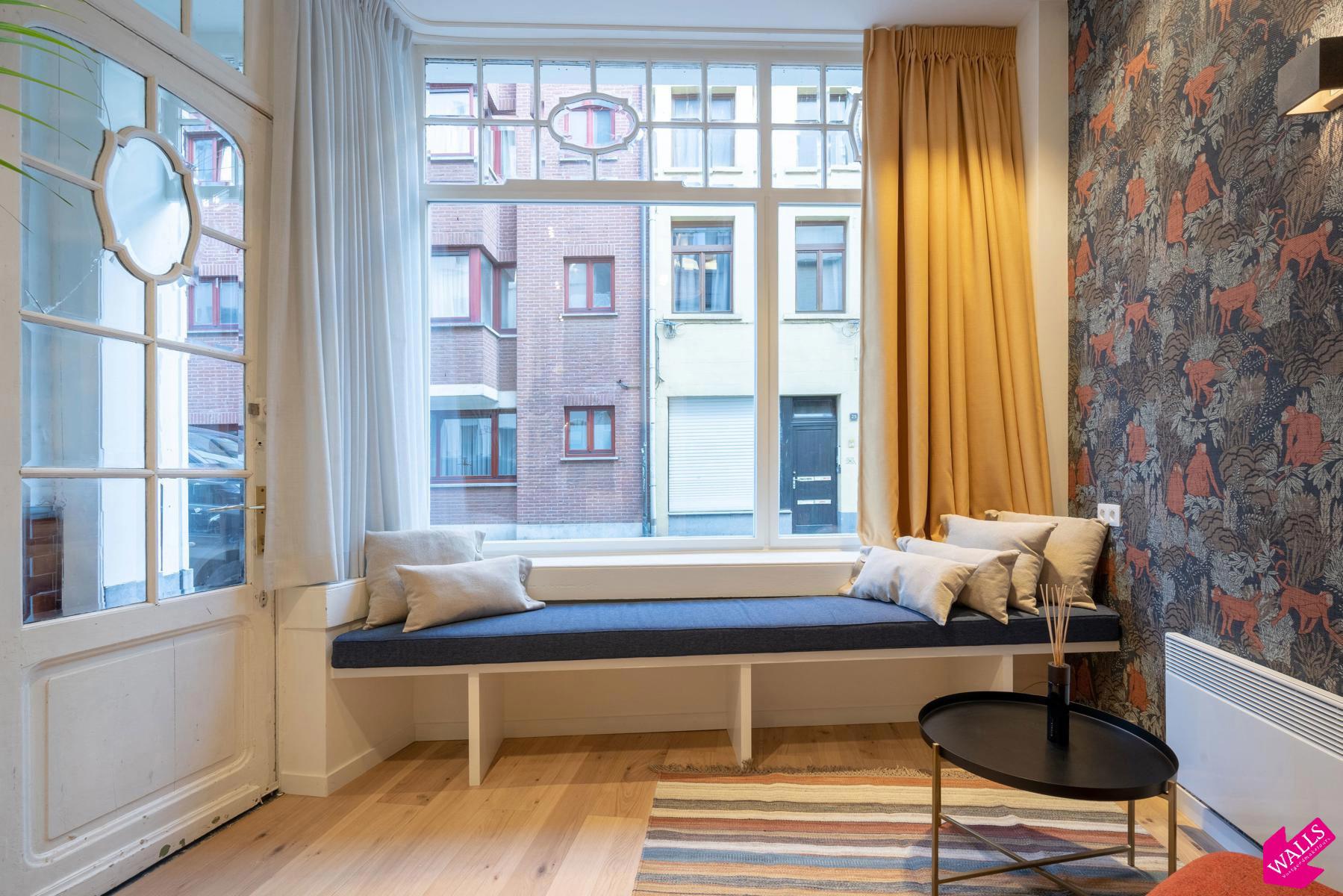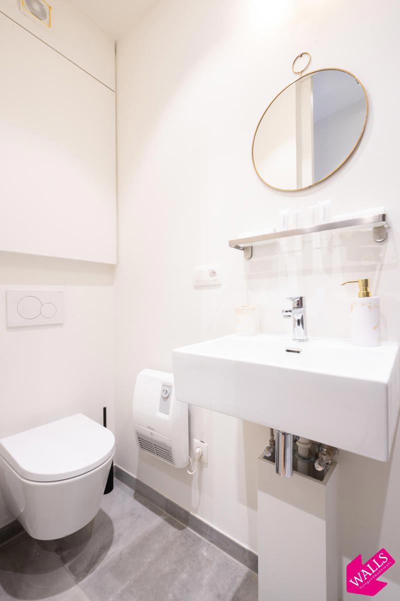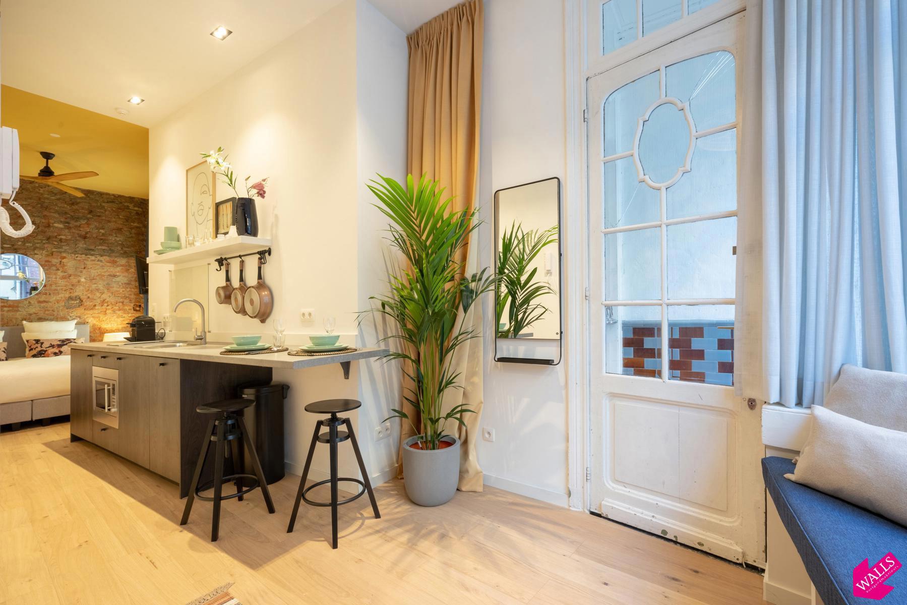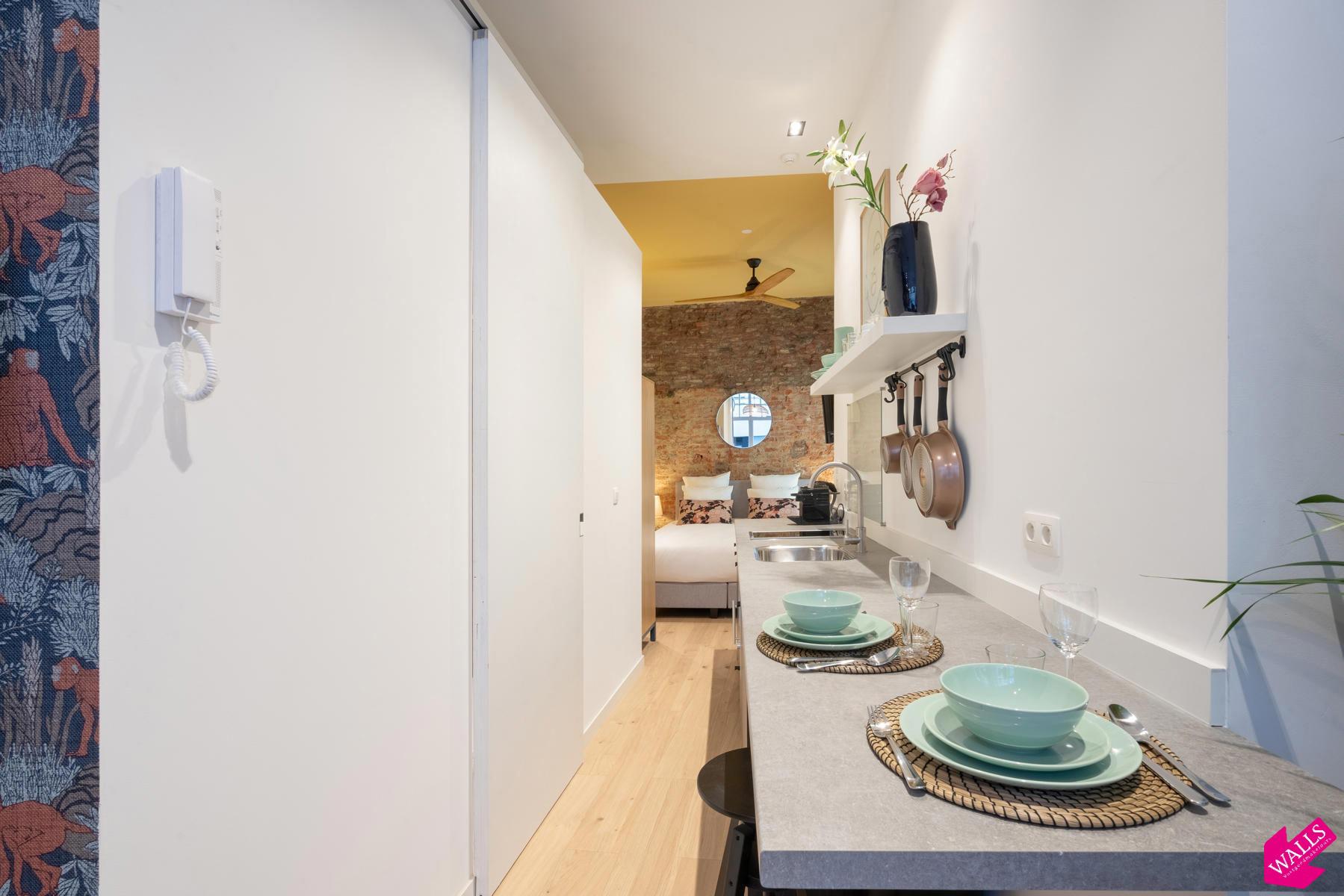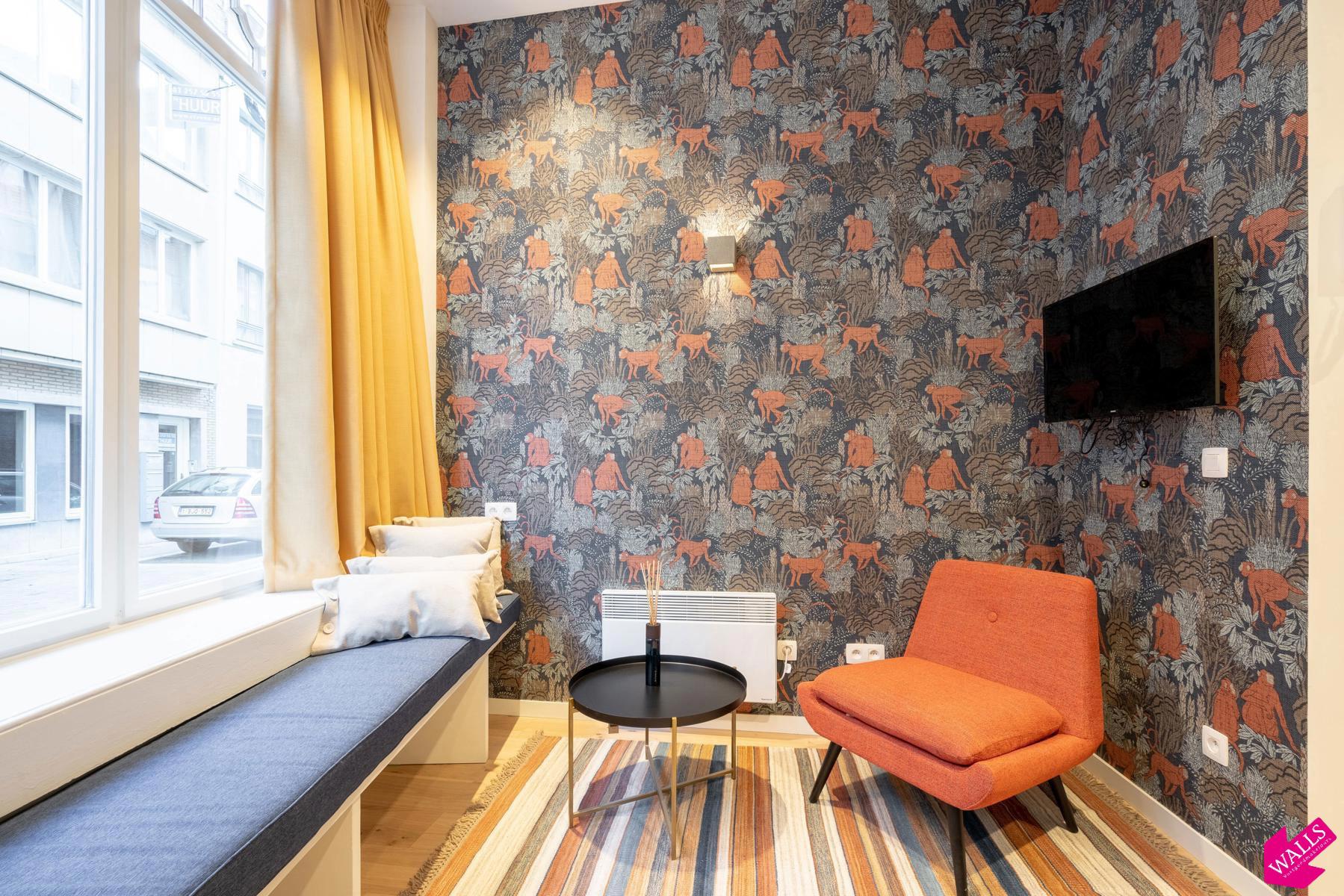 Gemeubelde studio te huur voor korte termijn ! Deze prachtige gemeubileerde studio gelegen op de begane grond van dit in 2018 gerenoveerde gebouw, wordt verhuurd voor een korte termijn vanaf 1 maand tot en met 3 maanden. De studio heeft een oppervlakte van 45 vierkante meter met een kleine patio van 4 vierkante meter. De studio bestaat uit een ruime living aan de voorzijde van het gebouw en is verbonden met het slaapgedeelte via de keuken aan de rechterzijde en de badkamer aan de linkerzijde. De open keuken bestaat uit een koelkast met vriesvak, een 2-pits keramische kookplaat, een vaatwasser, een combi-oven, een Nespresso koffiemachine, een waterkoker, en een uitgebreid assortiment aan tafel- en kookgerei. De badkamer bevindt zich tegenover de keuken en beschikt over een grote regendouche, een wastafel met spiegel en een toilet. In de living kunt u naar Netflix of gewenste zenders kijken vanuit de ingebouwde bank aan de raamkant, of vanuit de comfortabele 1-persoons fauteuil. In de slaapkamer is er een grote kledingkast voorzien en nog een TV bij het bed. Het boxspring bed heeft een afmeting van 160 cm breed en 200 cm lang en is voorzien van twee hoofdkussens en een donsdeken. Vanuit het slaapgedeelte kunt u via de schuifdeuren naar de patio met twee zitjes. Strijkijzer en strijkplank zijn aanwezig. De verhuurder biedt u een wekelijkse linnenservice aan en gas/water/licht/TV/Wifi zijn bij de prijs inbegrepen. Domicilie mogelijk afhankelijk van de termijn.