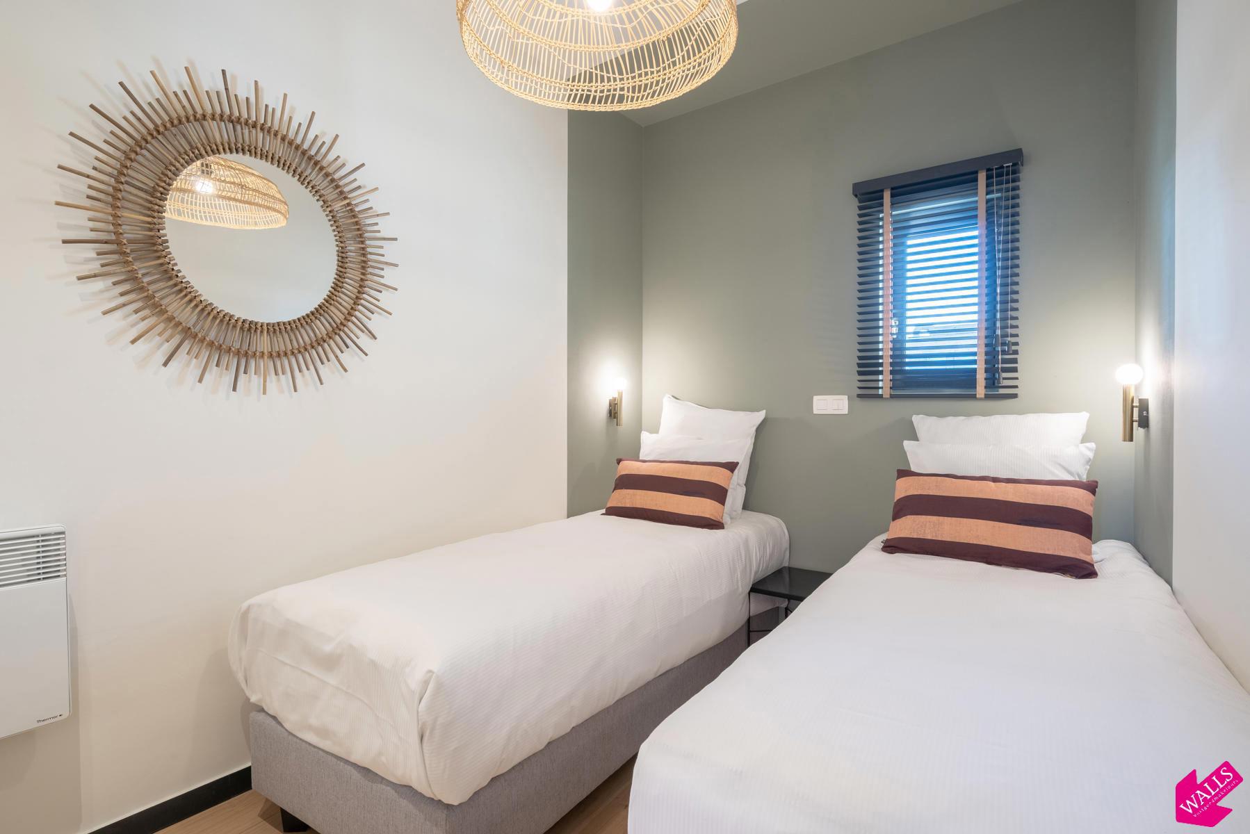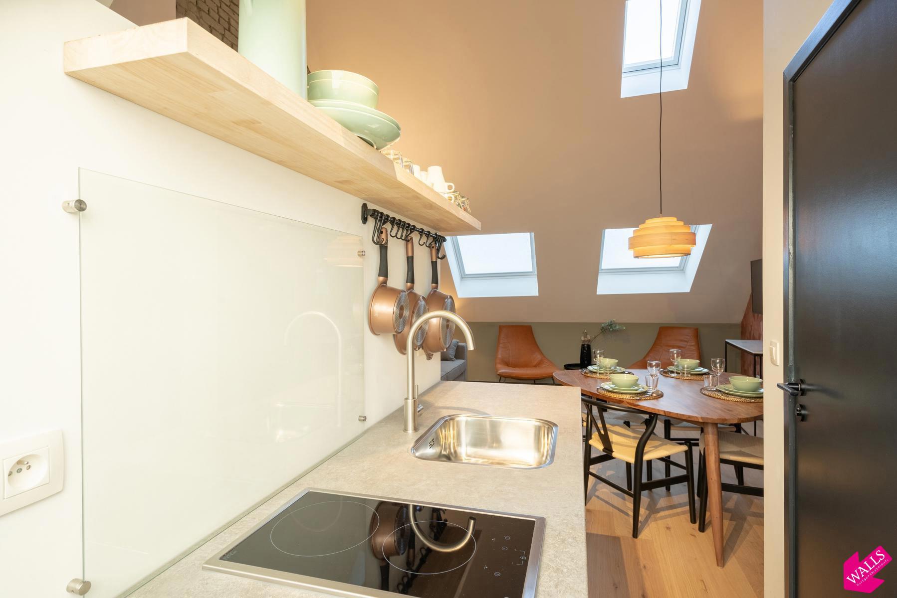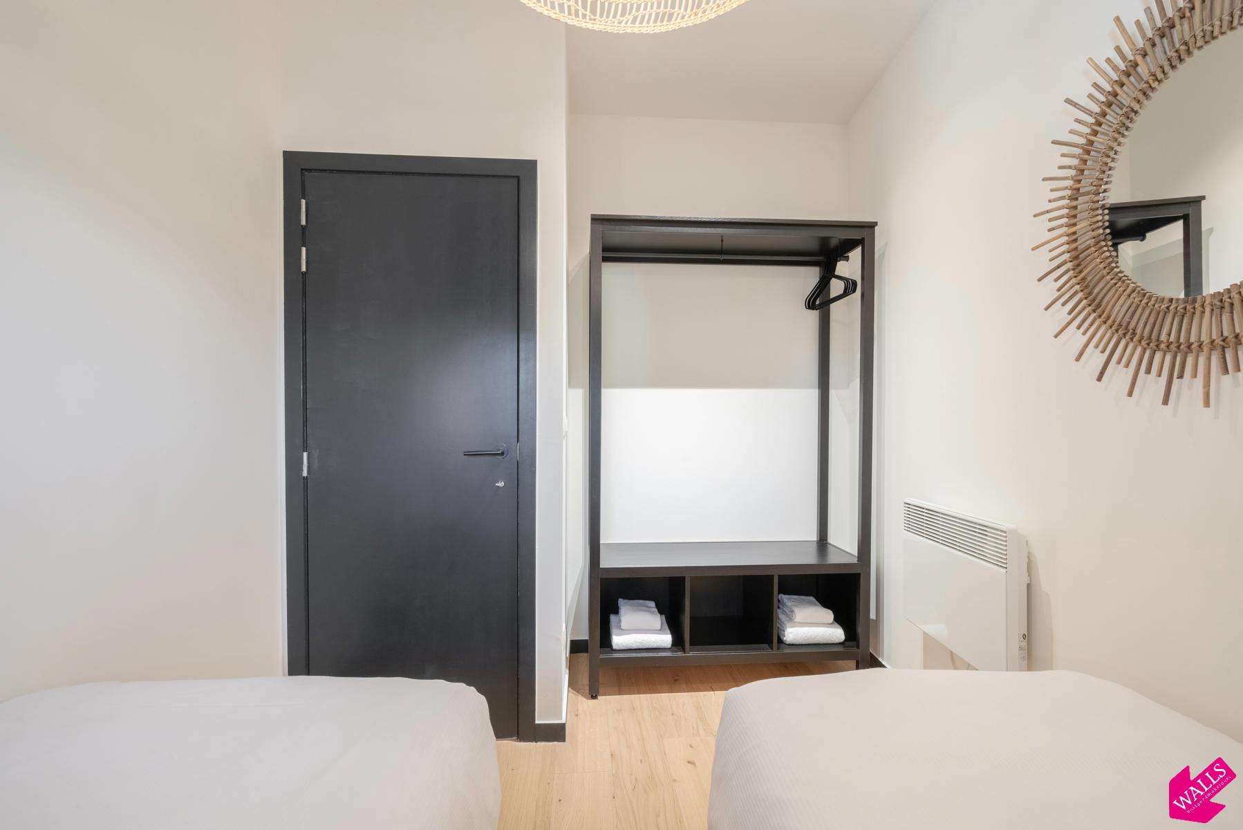Gemeubeld duplex appartement voor korte termijn te huur Dit gemeubileerde duplex appartement is gelegen op de derde verdieping van dit in 2018 gerenoveerde gebouw en wordt verhuurd voor een korte termijn vanaf 1 maand tot en met 3 maanden. Het appartement heeft een oppervlakte van 80 vierkante meter. Wanneer u het appartement betreedt, komt u terecht in de hal met toegang tot beide slaapkamers. Ook hier bevindt zich de badkamer met wastafel en toilet en een aparte grote regendouche. Slaapkamer 1 bevindt zich aan de voorzijde van het gebouw en bestaat uit een boxspring bed van 160 cm breed en 200 cm lang inclusief twee hoofdkussens en donsdeken. Deze slaapkamer bevat ook een ruime kledingkast en een flatscreen TV met Netflix en gewenste zenders. Slaapkamer 2 bevindt zich aan de achterzijde van het gebouw en bestaat uit een open kledingkast en twee enkele bedden, beide voorzien van een hoofdkussen en donsdeken. Via een kleine trap in het appartement betreedt u de ruime living met een twee-persoons zetel, twee zeer comfortabele leren fauteuils, een grote eettafel met vier stoelen, een open keuken en nog een apart toilet. De keuken bestaat uit een koelkast met vriesvak, een 2-pits keramische kookplaat, een vaatwasser, een combi-oven, een Nespresso koffiemachine, een waterkoker, en een uitgebreid assortiment aan tafel- en kookgerei. Strijkijzer en strijkplank zijn aanwezig. De verhuurder biedt u een wekelijkse linnenservice aan en gas/water/licht/TV/Wifi zijn bij de prijs inbegrepen. Domicilie mogelijk afhankelijk van de termijn.