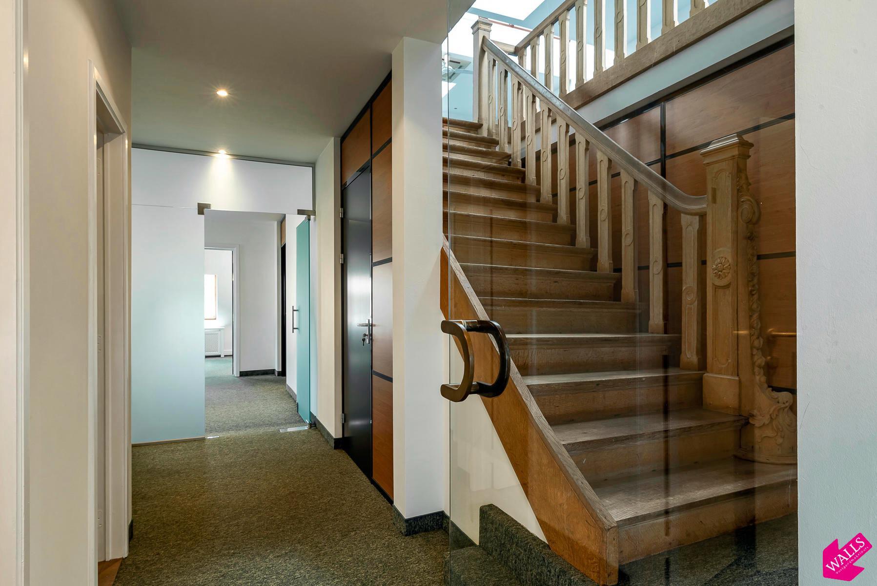 De prachtige zichten op het Stadspark, gecombineerd met de authentieke gevel en een standingvolle inkom, verlenen dit kantoor een tijdloze elegantie en uniek karakter.