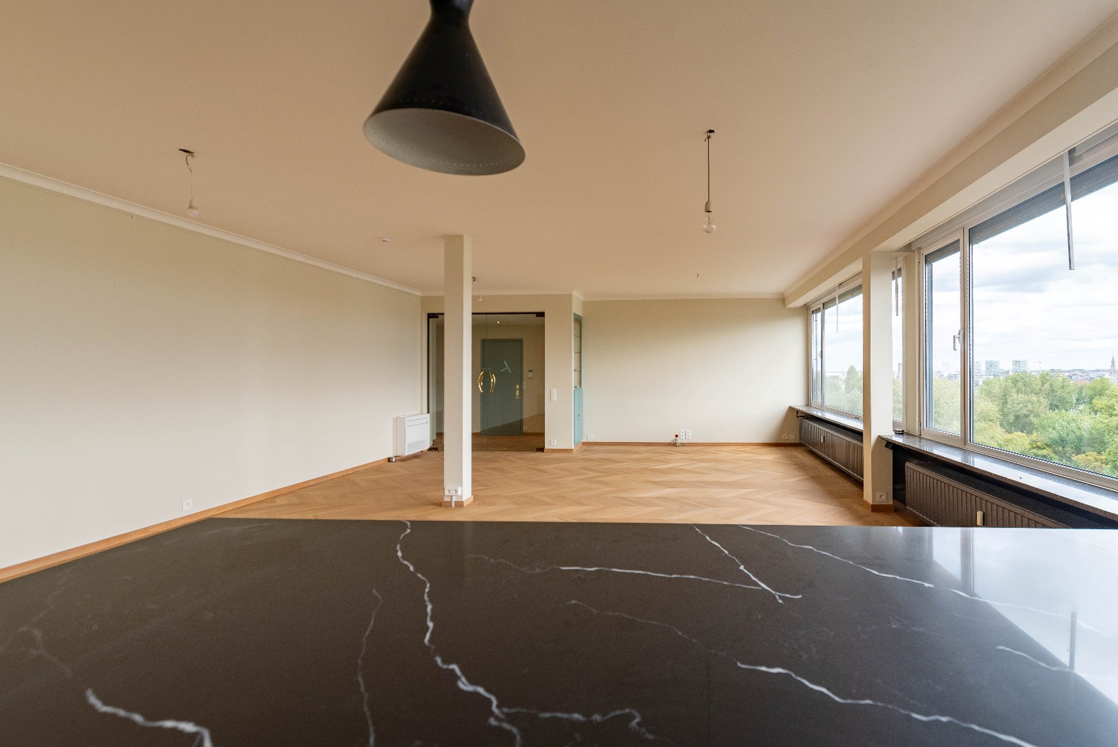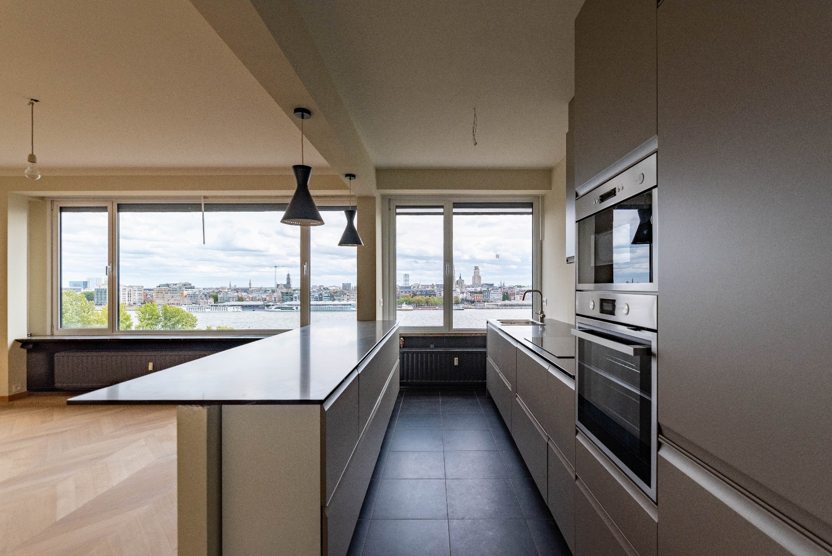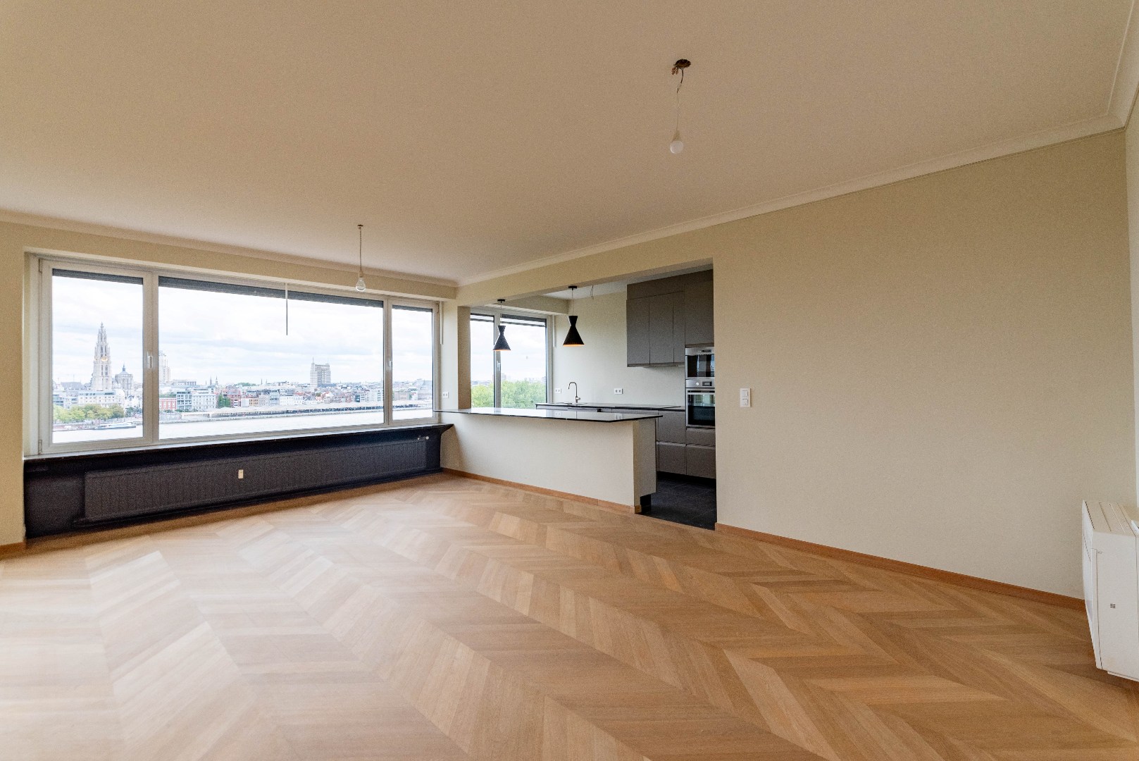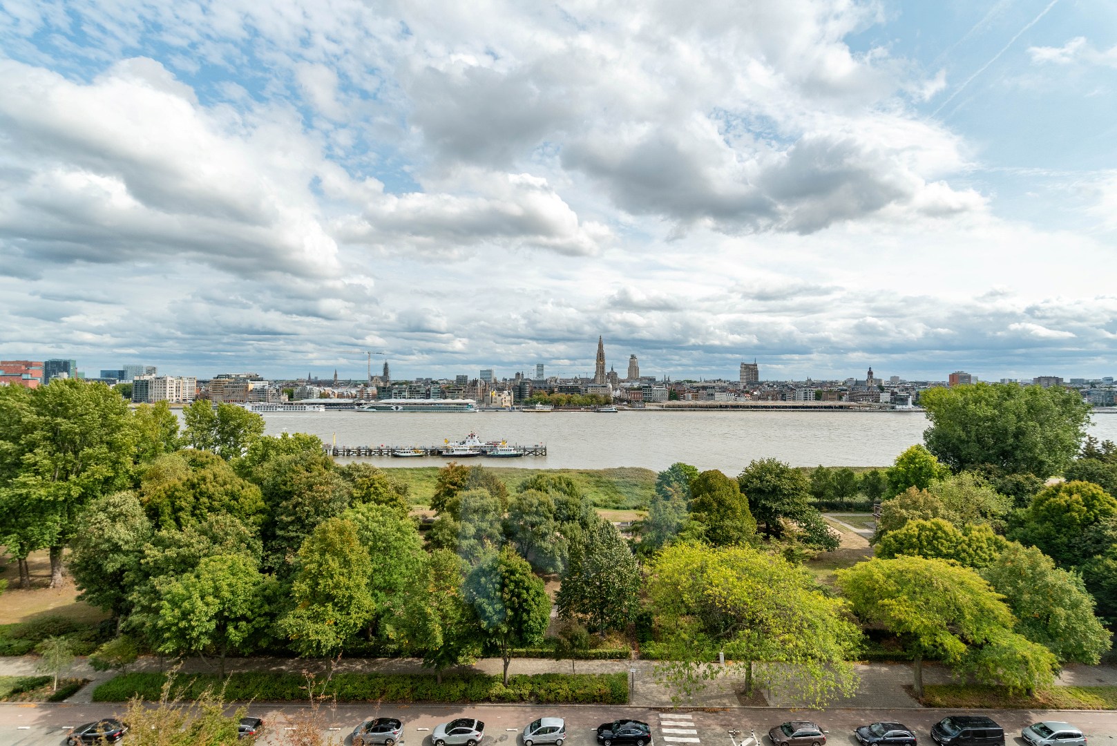 Ruim en vernieuwd appartement (183 m²) met kwalitatieve materialen gelegen op de 10de verdieping van Residentie ‘E. Van Marcke’, Thonetlaan met vrij uitzicht over de Schelde en de skyline van Antwerpen! Het is op wandelafstand van winkels, openbaar vervoer, voetgangerstunnel en de veerboot naar rechteroever stopt voor de deur. Het appartement is ingedeeld als volgt: inkomhal met gastentoilet en handenwasser; ruime leefruimte met veel lichtinval door de vele raampartijen; open en ingerichte keuken met kasten en toestellen (vaatwasser, koelkast, diepvries, kookvuur, dampkap, dubbele spoelbak, oven en microgolfoven); 4 slaapkamers waarvan 1 met dressing en aansluitend Zuidwest terras; badkamer voorzien van ligbad met doucheaansluiting, lavabomeubel en toilet en een aparte douchekamer met inloopdouche en lavabomeubel; aparte berging met aansluiting wasmachine en droogkast.