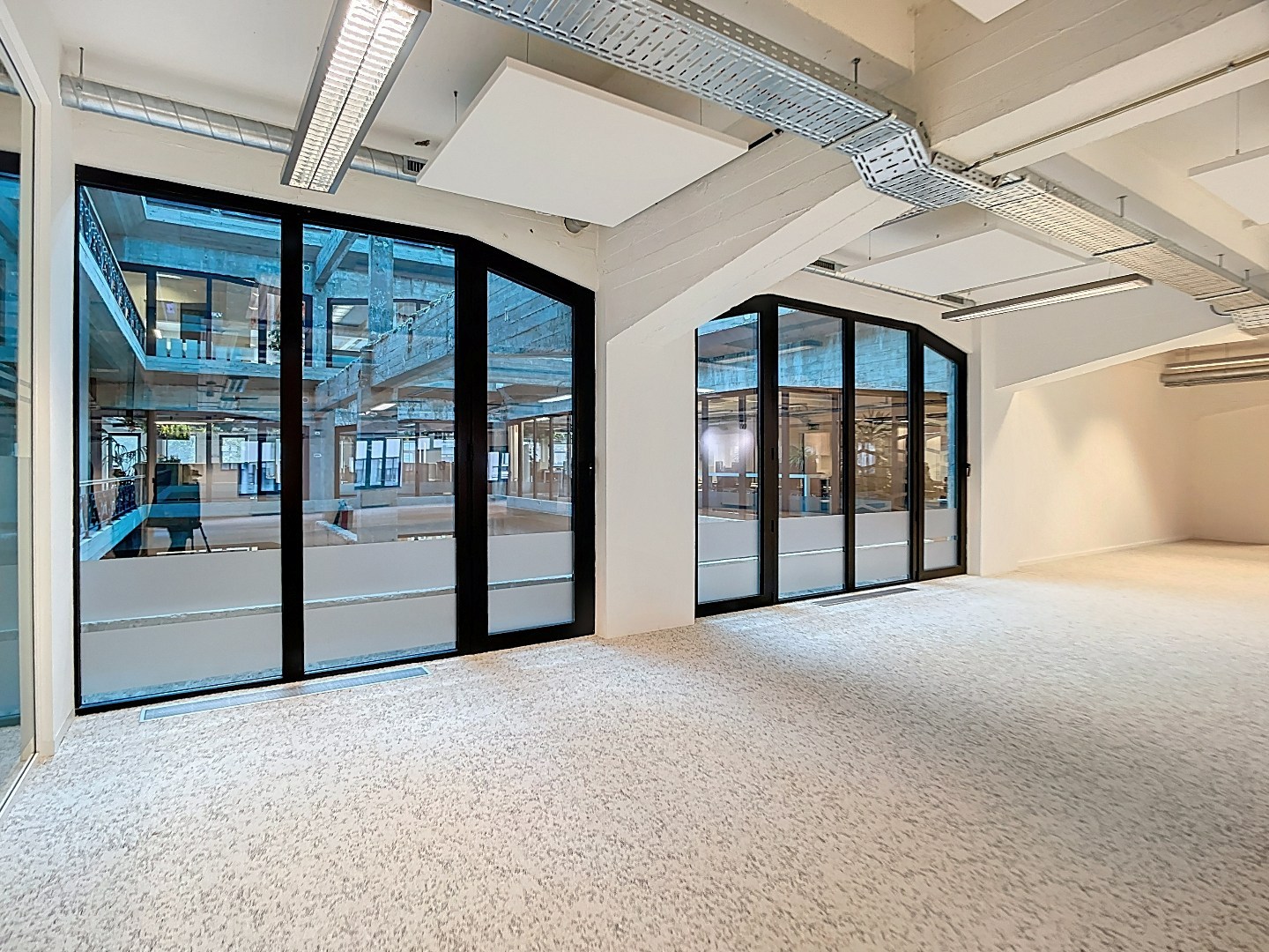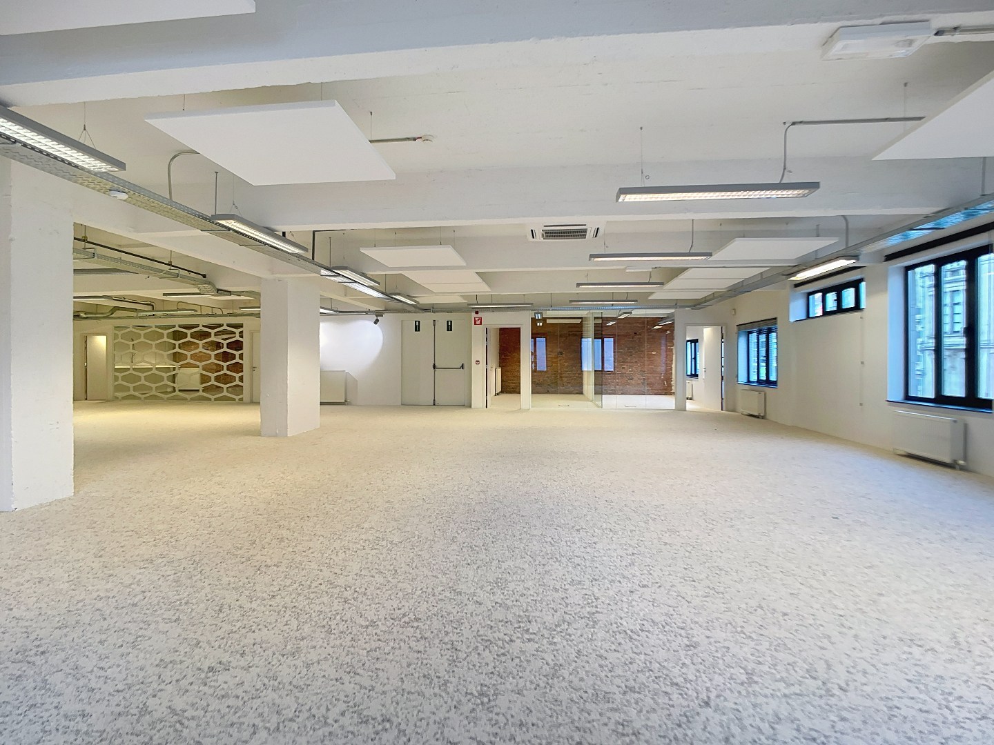 Gelegen op de eerste verdieping vinden we deze high-end kantoorruimte van +/- 600m² terug. Het kantoor is voorzien een keuken, sanitair, grote raampartijen, en een hoogwaardige afwerking. Dankzij de prachtige inkomhal ontvangt u uw klanten in stijl.