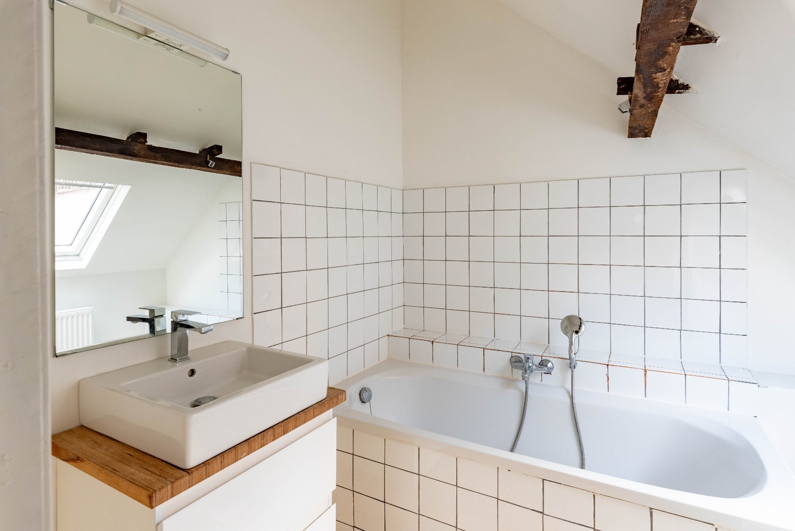 Nieuwe keuken voorzien van vaatwasser, koelkast met vriesvak, elektrisch kookvuur, dampkap en oven. Open ruimte voor leefruimte. Op de derde verdieping vinden we een eerste zeer ruime slaapkamer met eigen badkamer. Achteraan het pand is er nog een tweede ruime slaapkamer met eigen badkamer voorzien.