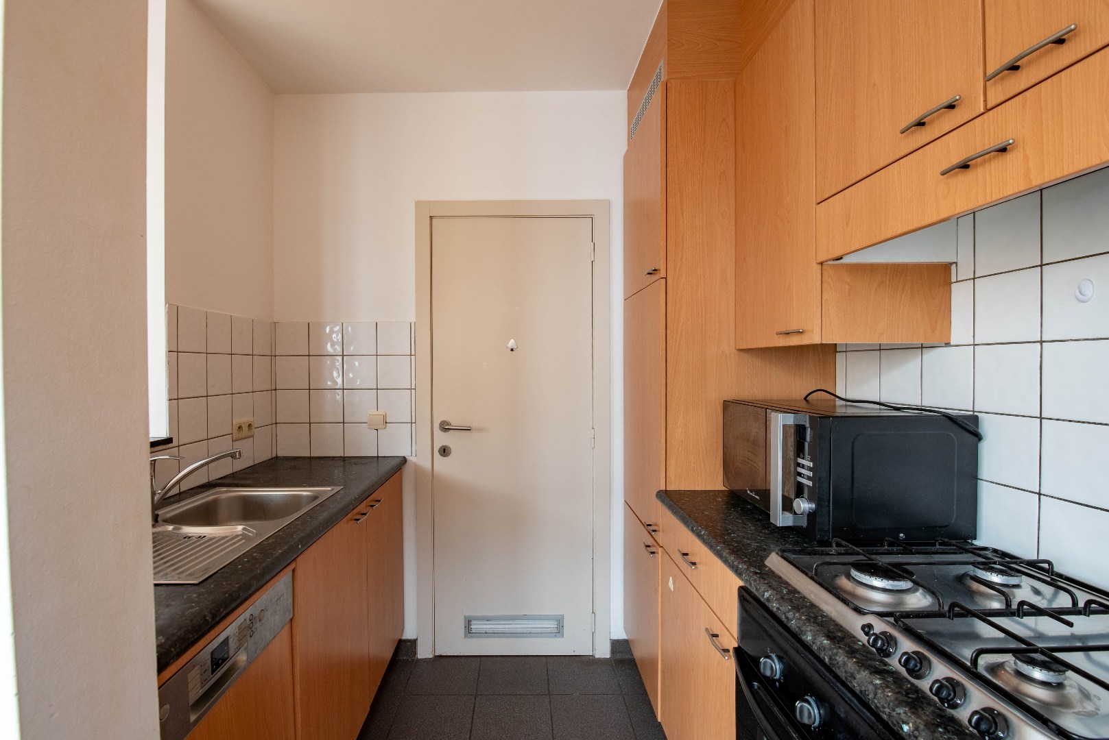 Inkomhal, 2 slaapkamers (13m² - 8,5m²), ruime lichtrijke woonkamer , open keuken die volledig is geïnstalleerd met oven, vaatwasser, koelkast met vriesvak en kookvuur op gas. Berging met aansluiting voor de wasmachine en droogkast. Apart toilet. Badkamer met douchebad en lavabo. Zeer veel licht in de woonkamer dankzij de grote schuifraam die toegang geeft tot het leuke terras vooraan, waar het aangenaam vertoeven is.