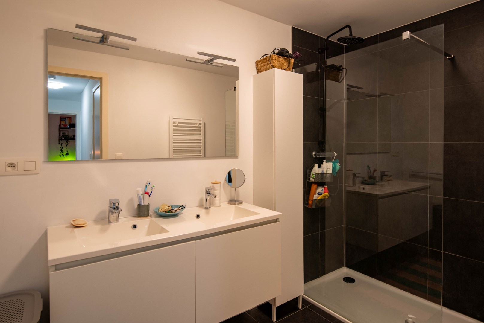 Nieuwbouw appartement op de 1ste verdieping in nieuwbouwwijk Regatta met ruim terras. Zeer centraal gelegen aan het park en zeilplas Galgenweel en toch op een boogscheut van Antwerpen-centrum! Met zijn centrale ligging is het nabij winkels, scholen en openbaar vervoer. Het appartement op tegelvloer bestaat uit: woonkamer met ingerichte open keuken met kasten en inbouwtoestellen met o.a. dampkap, elektrische kookplaat, spoelbak, vaatwasser, oven en koelkast; aansluitend aan de leefruimte is het terras (40m²); 2 slaapkamers (12m² - 8m²) die ook toegang geven tot het terras; ingerichte badkamer met dubbel lavabomeubel en inloopdouche; apart toilet met handenwasser; berging met aansluiting was- en droogautomaat. Inclusief is de ondergrondse kelderberging. Individuele nutsvoorzieningen! Algemene onkosten (ca. 50 euro / maand)! EPC: 80 kWh/m²