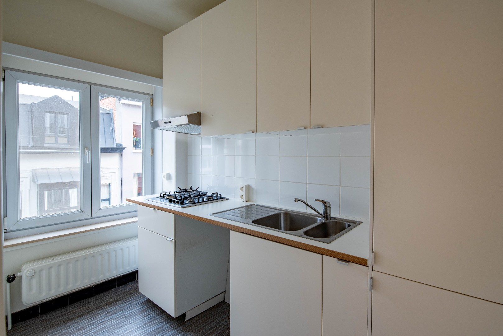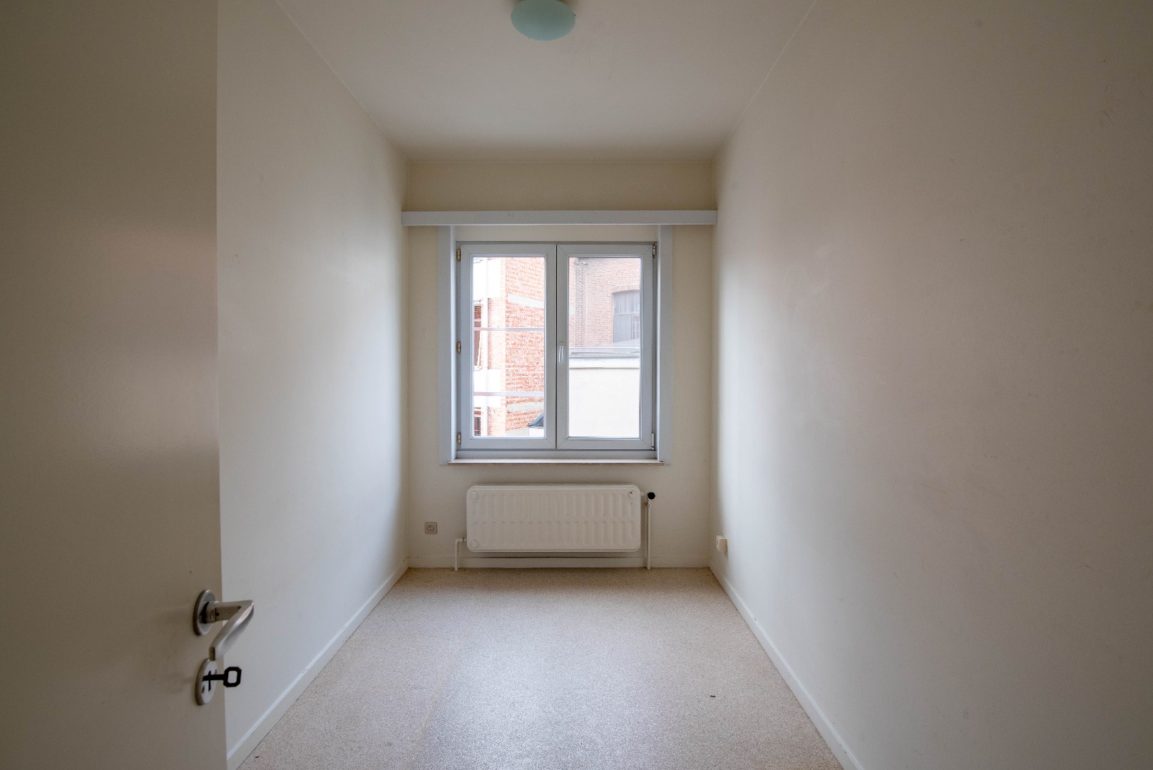 Binnenkomen doe je via de inkomhal, dewelke toegang biedt onder andere tot de twee slaapkamers. Beide slaapkamers zijn achteraan het gebouw gelegen. De eerste is ideaal als thuiswerkplek of dressing en de tweede slaapkamer is ruim genoeg voor een dubbel bed. Verder in de inkomhal is er nog toegang tot de geriefelijke badkamer, deze is voorzien van douche, lavabomeubel en toilet. Vooraan aan het appartement is de ruime leefruimte voorzien. Deze beschikt over leuke authentieke elementen zoals het blokjesparket en de voormalige sierschouw. Als laatste is er nog een afgesloten keuken, dewelke voorzien is van alle gemakken en de mogelijkheid biedt om een wasmachine te plaatsen.
