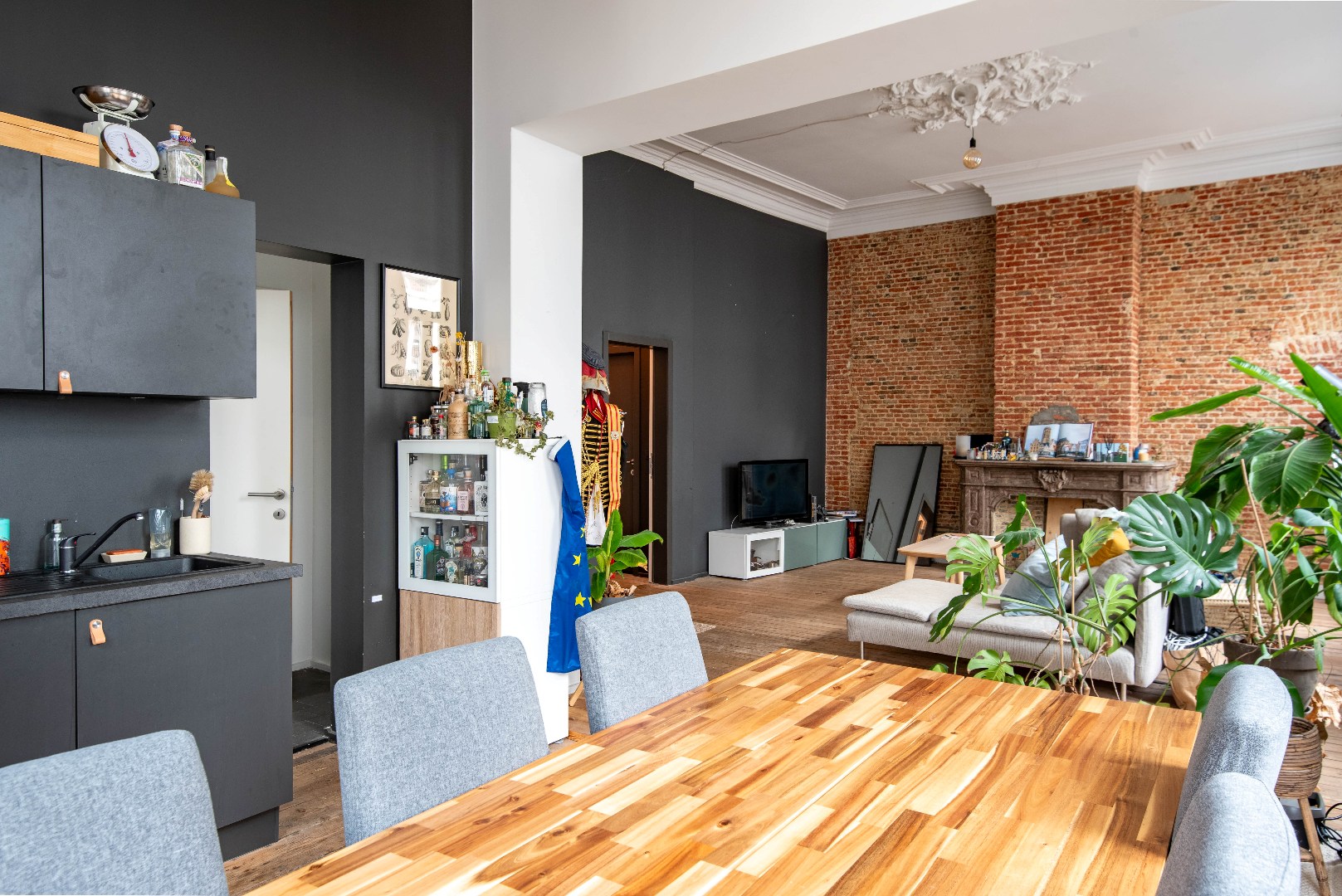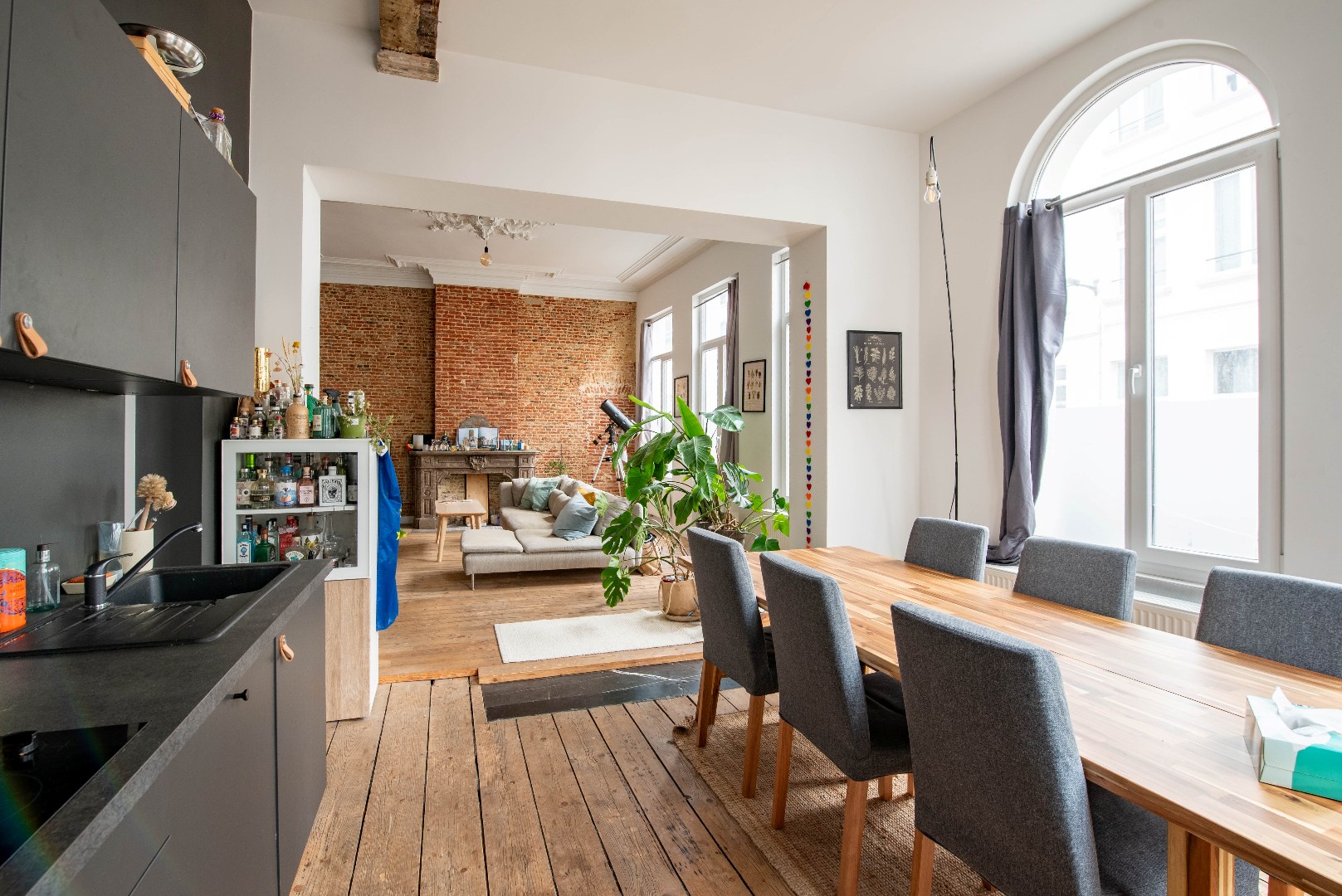 Gelegen op de 1ste verdieping van het gebouw vinden we dit lichtrijk appartement in het stadscentrum van Antwerpen.