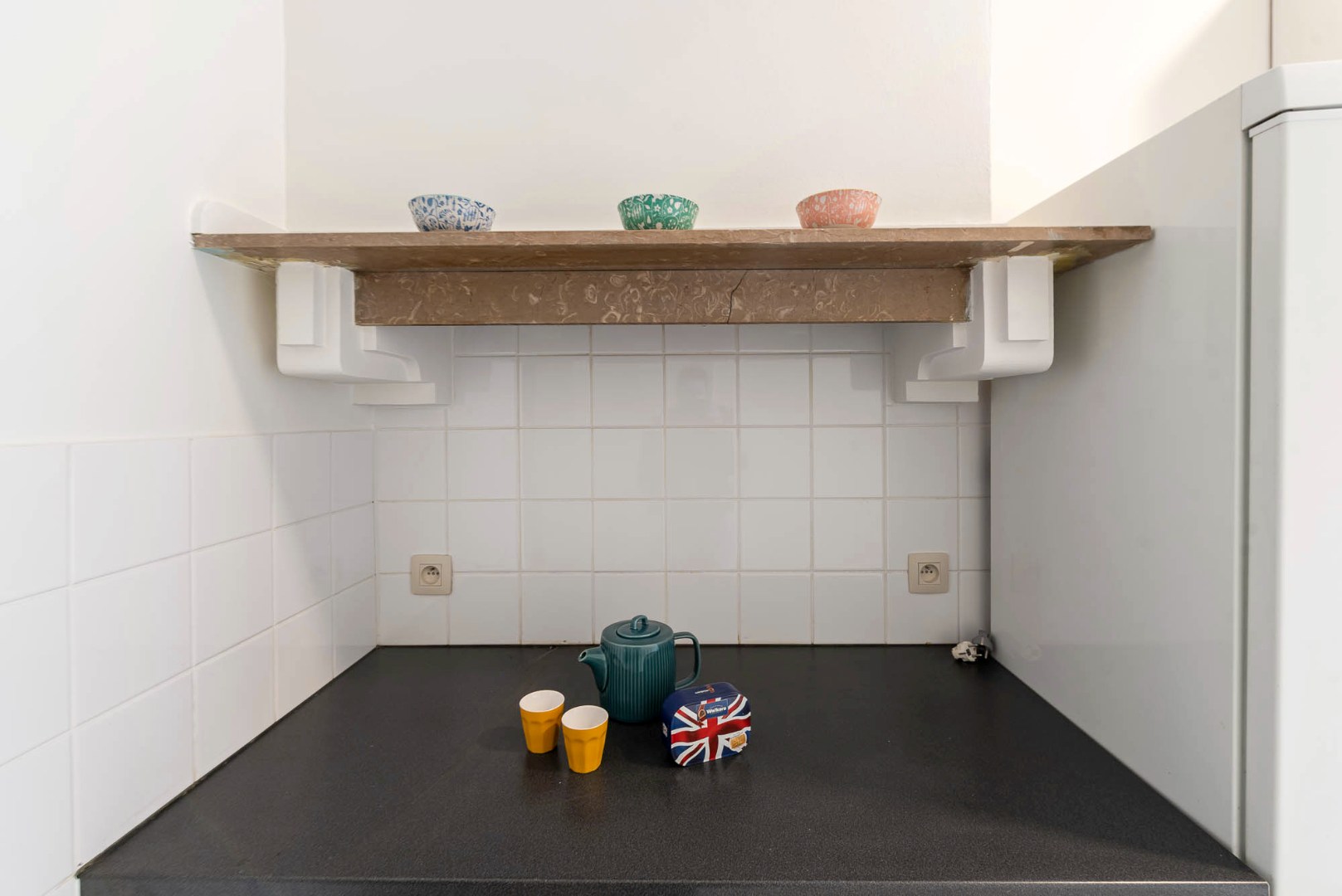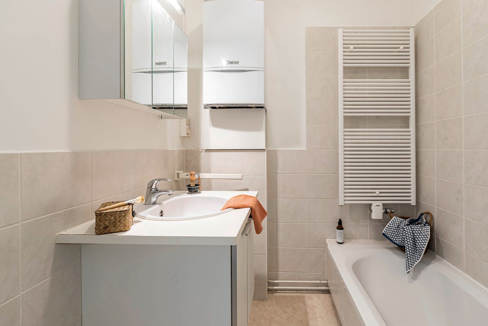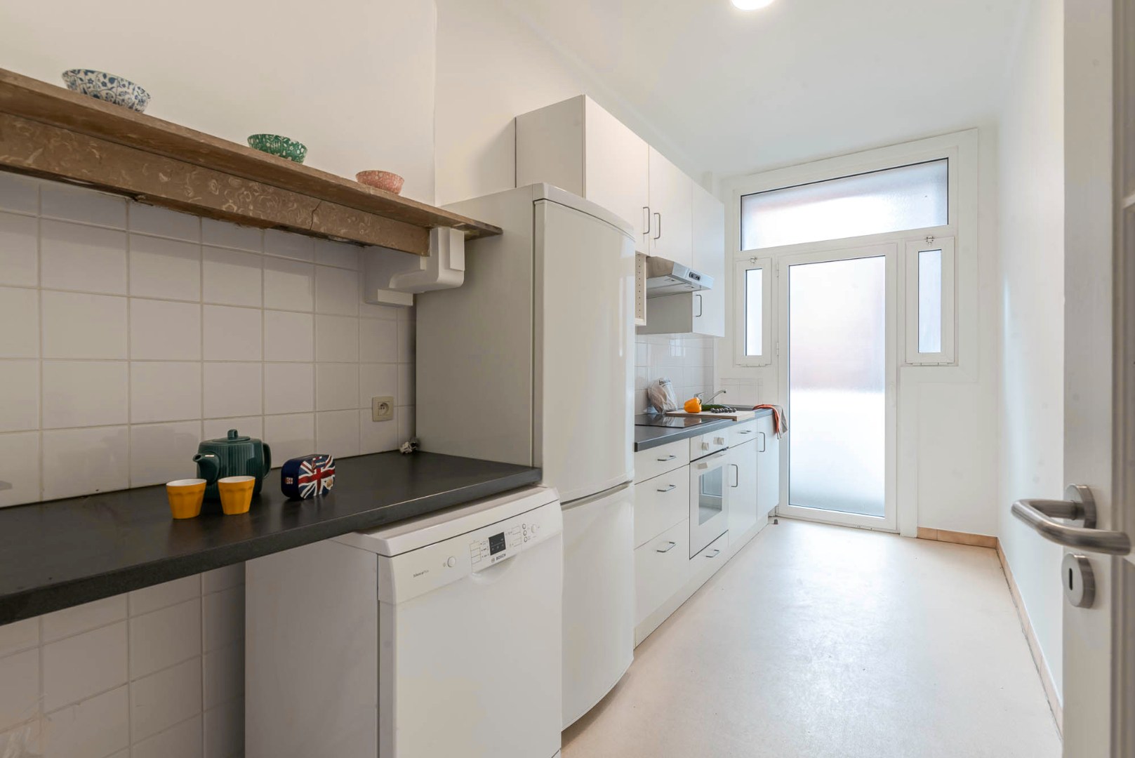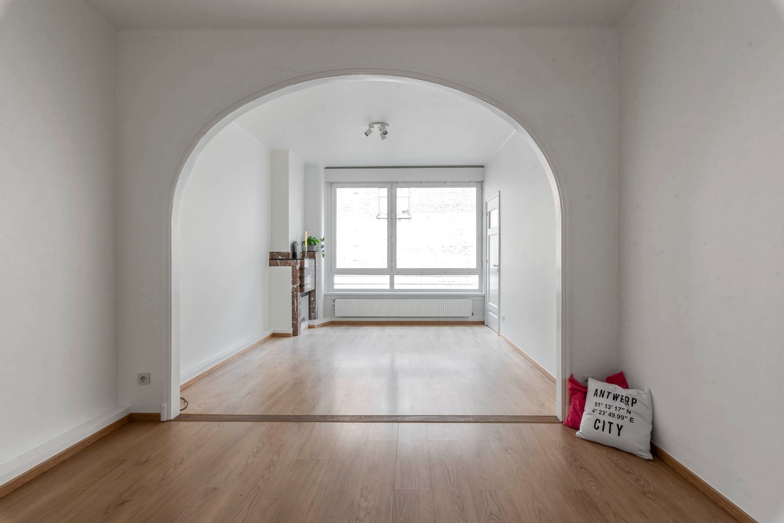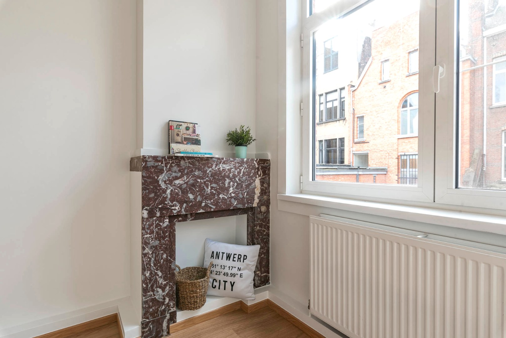 Gelegen in een zijstraat van de Huidevettersstraat vinden wij dit ruim en lichtrijk appartement op de 2de verdieping van een zeer verzorgd gebouw en voorzien van authentieke elementen.