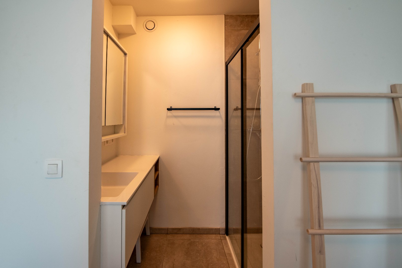 Dit stijlvol gemeubeld 1- slaapkamer nieuwbouw appartement is gelegen op een toplocatie op 't Zuid in Antwerpen. Vlakbij het bruisende stadsleven, de waterpoort en tegelijkertijd in een oase van rust met het recent aangelegde Zuidpark om de hoek. Winkels, scholen, openbaar vervoer, parkeermogelijkheden, gezellige restaurants en cafés bevinden zich in de nabije omgeving.