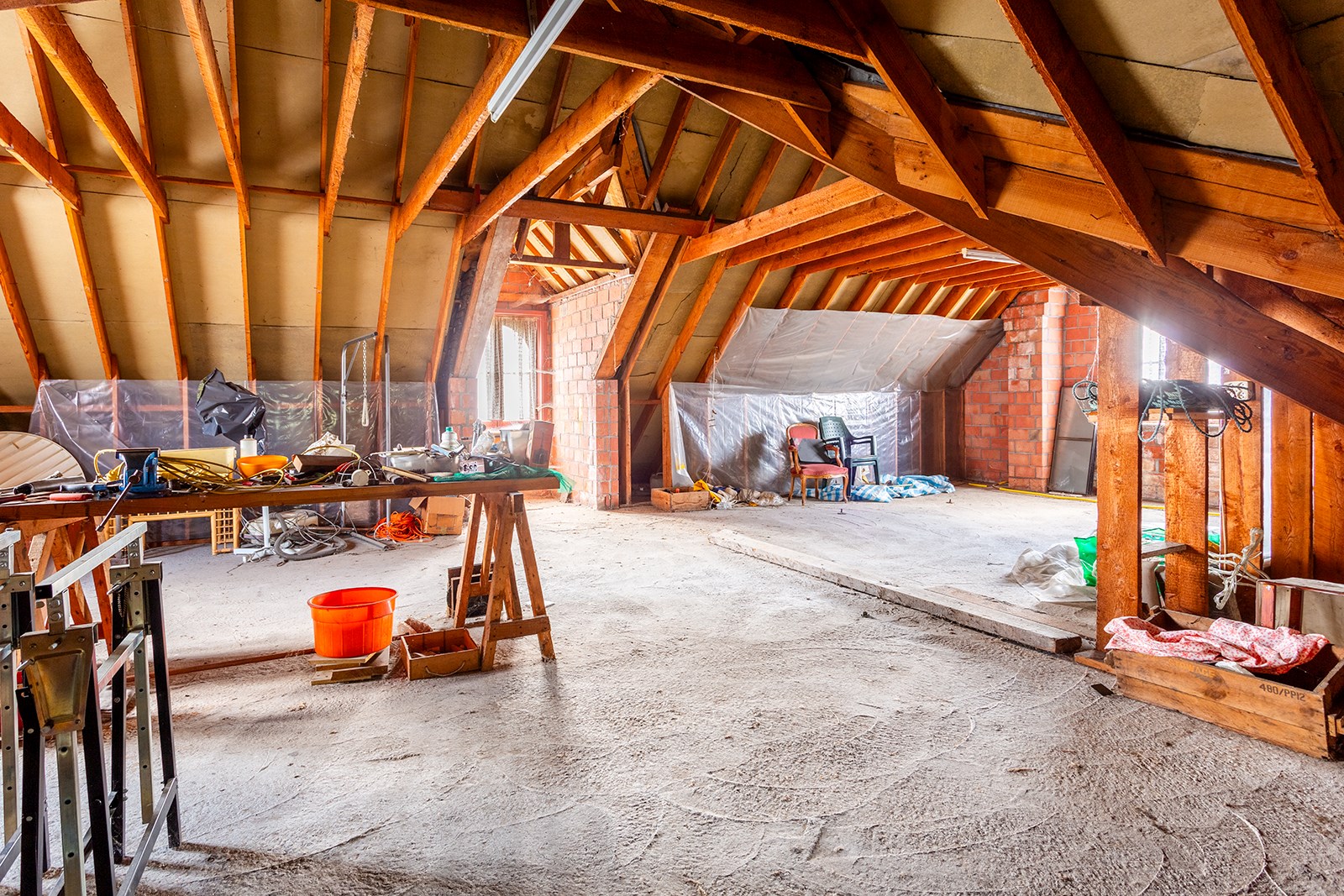 De zolderverdieping (127m²) is perfect om om te bouwen naar drie ruime slaapkamers of vrij in te delen ruimten.