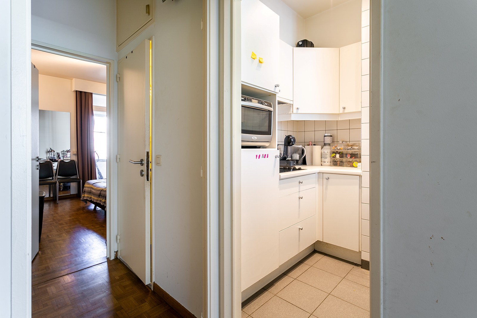 Het appartement is gelegen op de 2de verdieping van een verzorgd gebouw. Indeling als volgt: inkomhal met apart toilet , living met ingerichte half open keuken , badkamer met douche lavabo en plaats voor wasmachine/ droogkast. Achteraan in het appartement vinden we de ruime slaapkamer terug met een klein terrasje. Het volledige appartement is voorzien van een charmante parketvloer! Ook is er de mogelijkheid tot aankoop van een ondergrondse parking.
