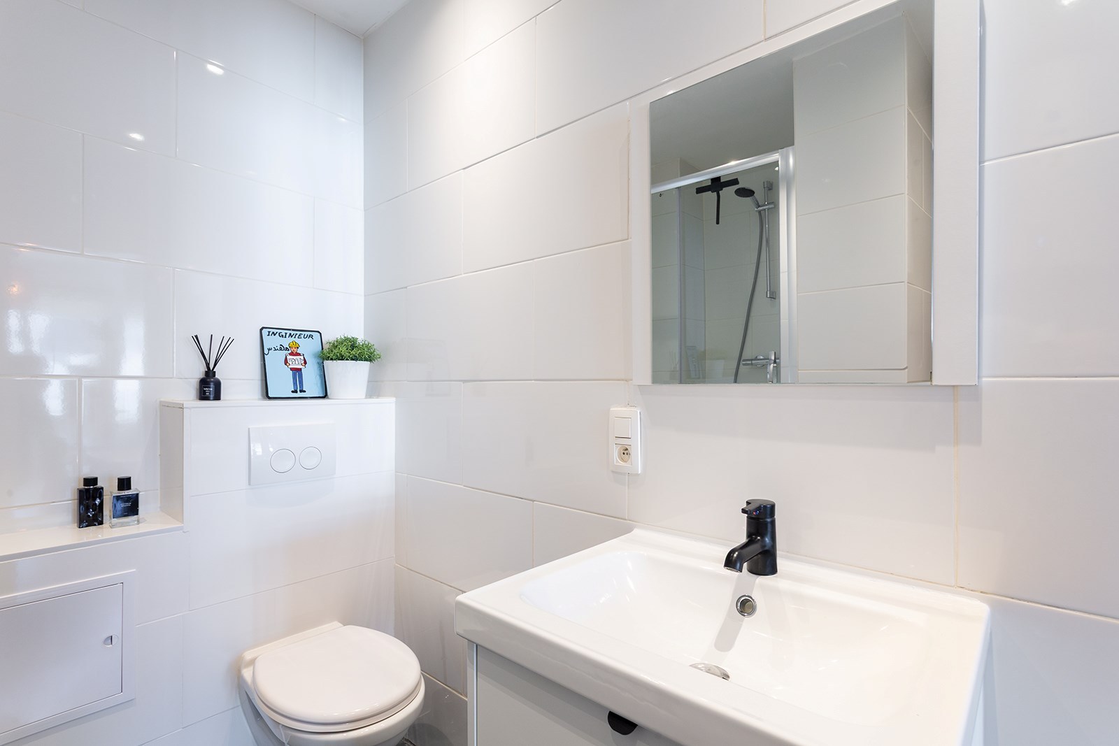 De keuken? Een strak en praktisch hoekje, voorzien van alle hedendaags comfort. De badkamer is verzorgd, fris en uitgerust met douche, lavabo, toilet en aansluiting voor een wasmachine.