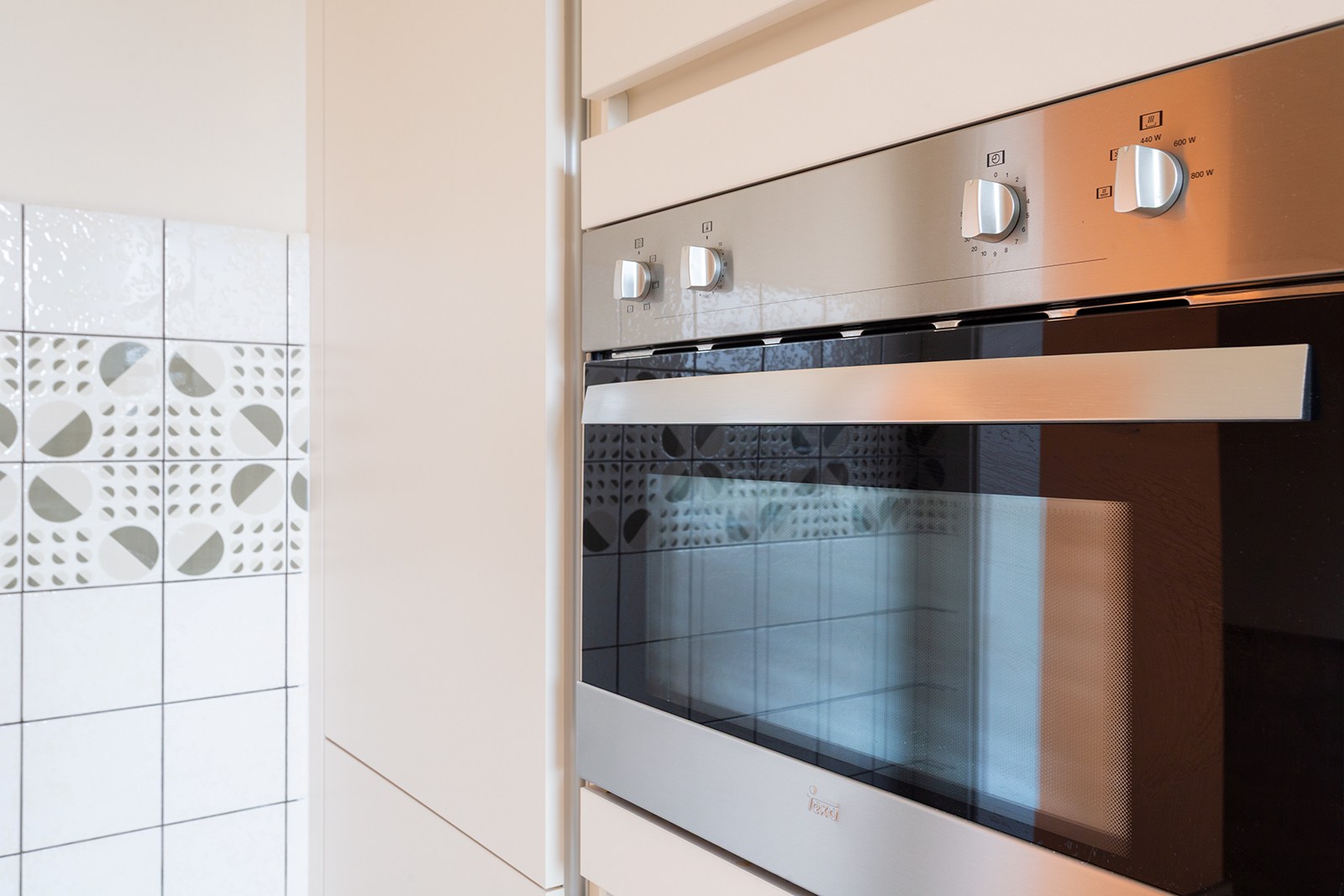 Aansluitend vind je de praktische keuken, volledig uitgerust met alle nodige toestellen om elke maaltijd met gemak te bereiden. De keuken biedt ook voldoende kastruimte en werkoppervlak, wat het dagelijkse gebruik extra comfortabel maakt.