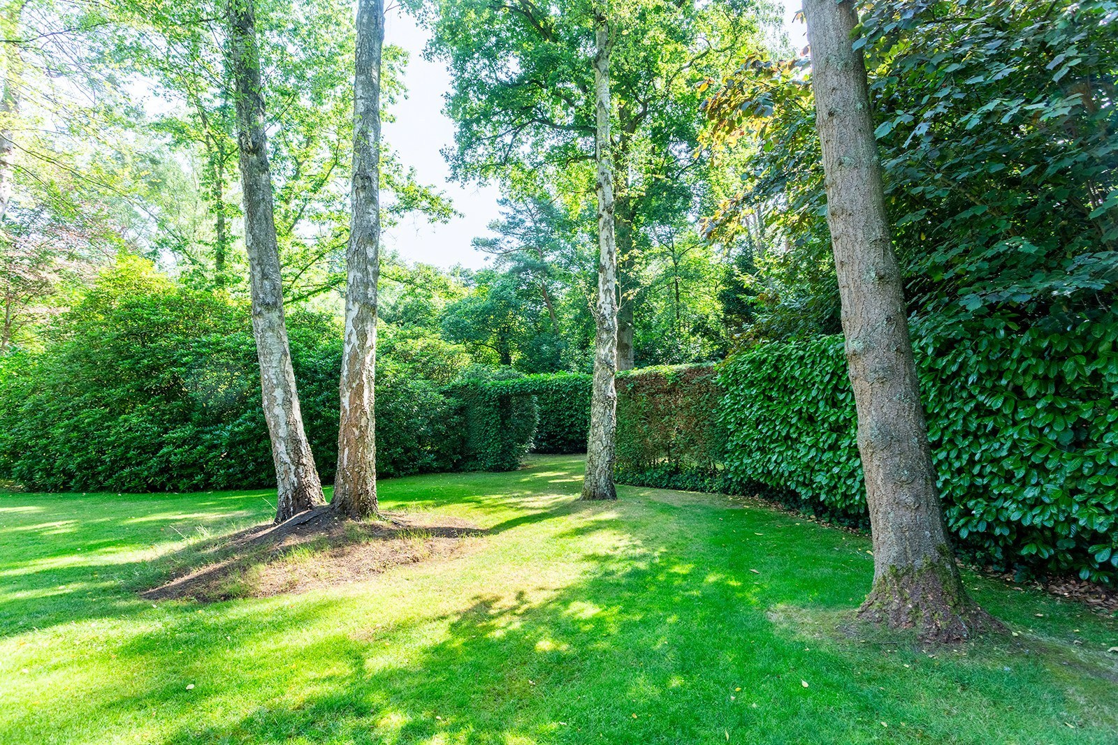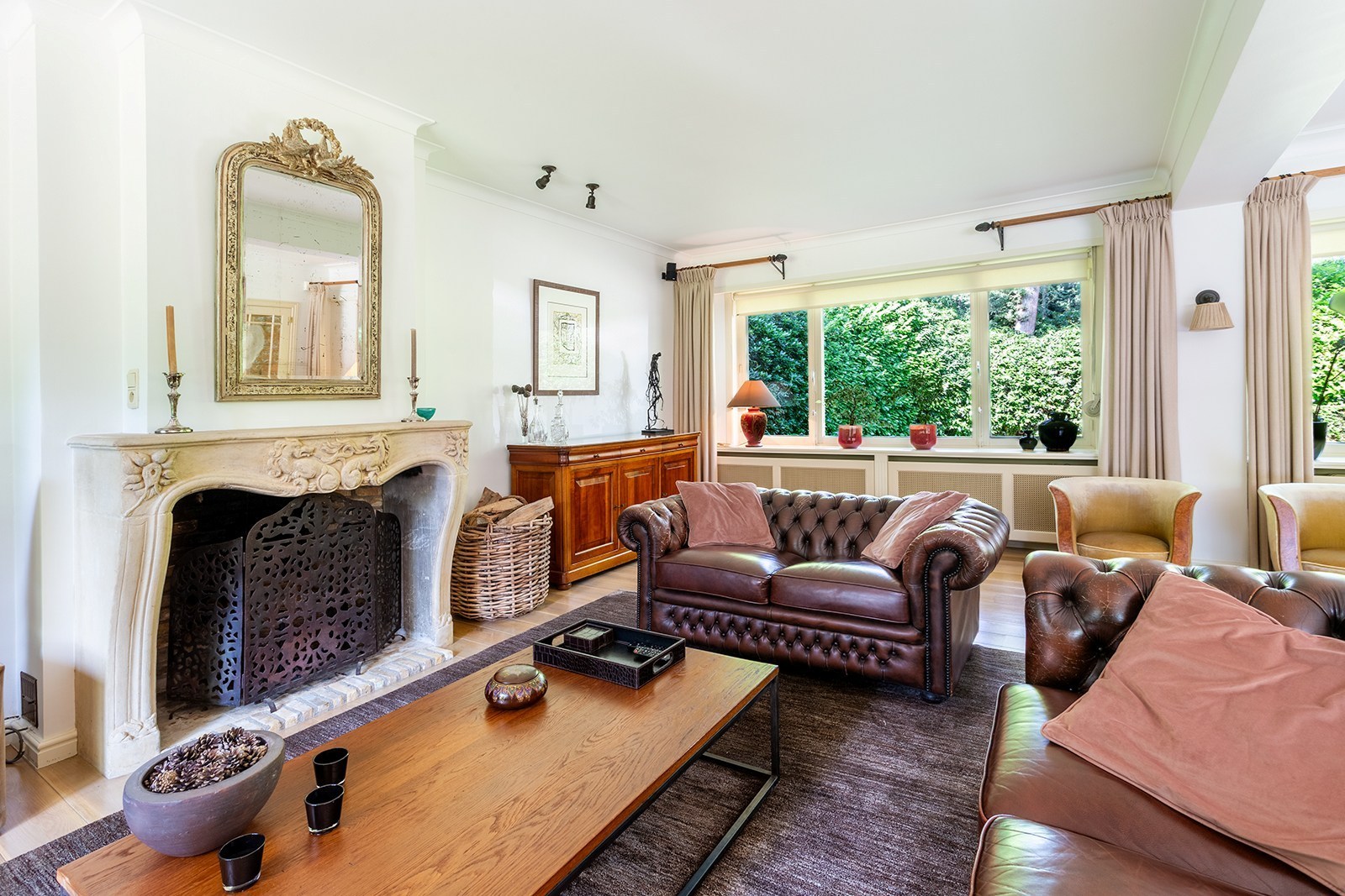 Via de charmante inkomhal met gastentoilet stap je binnen in een woning die meteen warmte en karakter uitstraalt. De royale leefruimte baadt in natuurlijk licht dankzij de vele ramen en biedt schitterende uitzichten op de groene tuin. De parketvloer en de sfeervolle open haard zorgen voor een knusse, huiselijke sfeer. Aansluitend bevindt zich een elegante bibliotheek die toegang geeft tot het kantoor – de perfecte setting voor wie stijlvol van thuis uit wil werken.