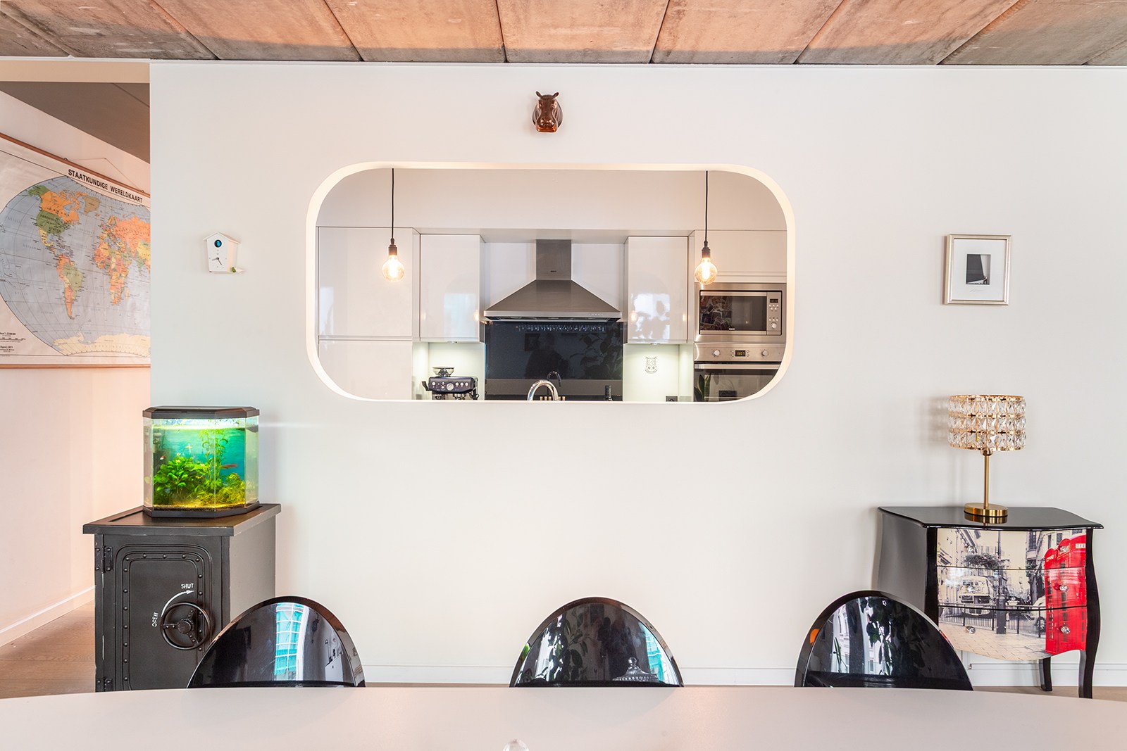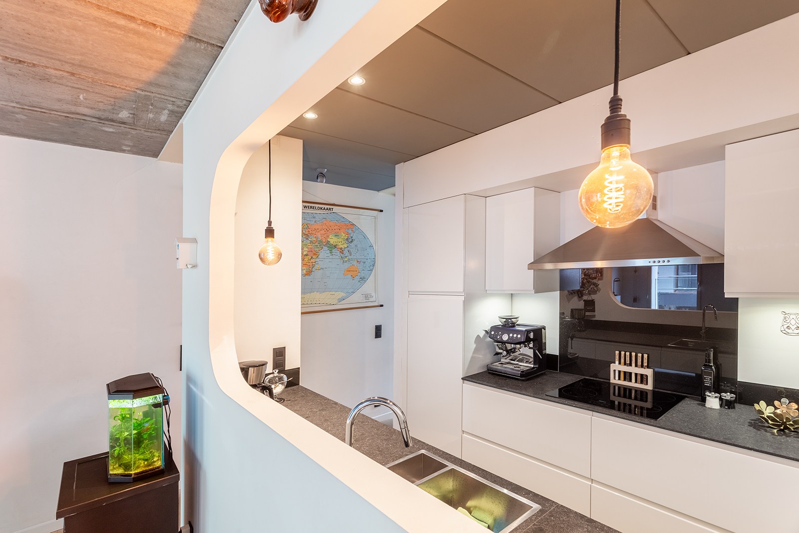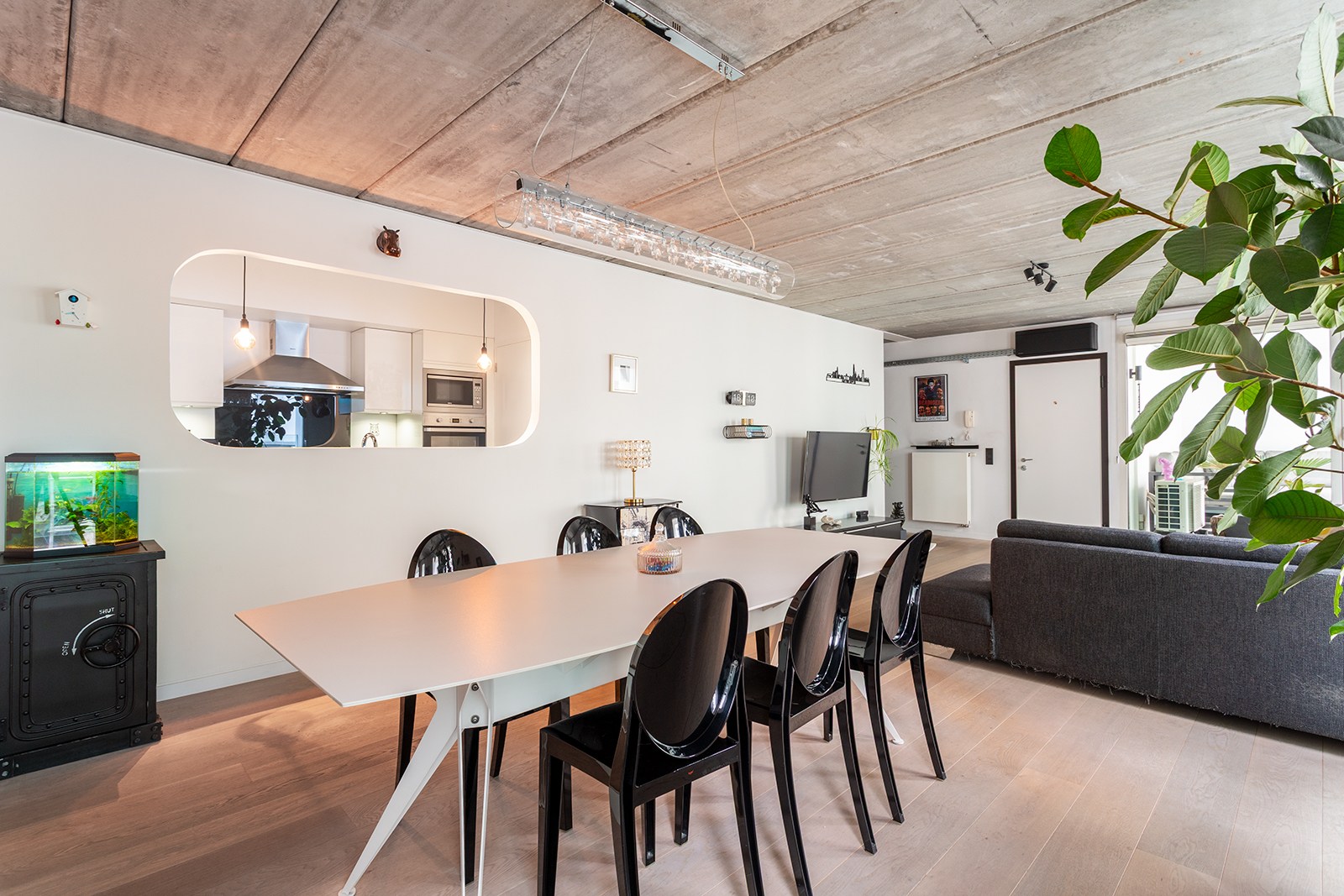 De constructie in beton en de stoere plafonds zorgen voor een hedendaagse, industriële uitstraling met veel karakter.