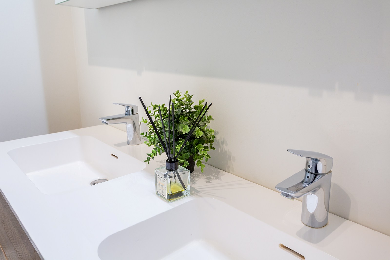 Verder beschikt het appartement over twee volwaardige slaapkamers en een moderne badkamer met dubbele lavabo en douche.