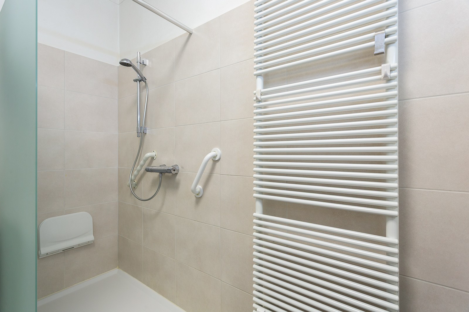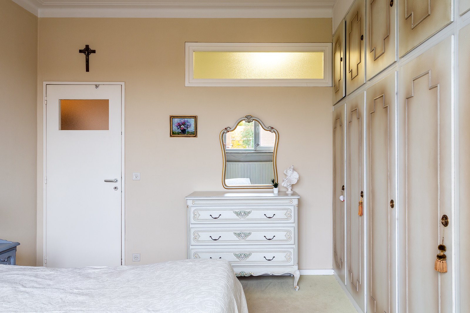 De keuken is afgesloten van de leefruimte en is praktisch ingericht met voldoende kastruimte en een onderhoudsvriendelijke tegelvloer. Via de inkomhal, bereik je de verschillende kamers van het appartement. Het appartement beschikt over drie slaapkamers (8m²,12m² en 17m²). De eerste slaapkamer, met parketvloer, geeft toegang tot een klein maar gezellig terras — ideaal om even buiten te ontspannen. De tweede kamer wordt momenteel gebruikt als dressing, terwijl de derde kamer zich perfect leent als extra slaap- of bureauruimte. De badkamer is voorzien van een inloopdouche, dubbele lavabo, lavabomeubele een verwarmingsrek.