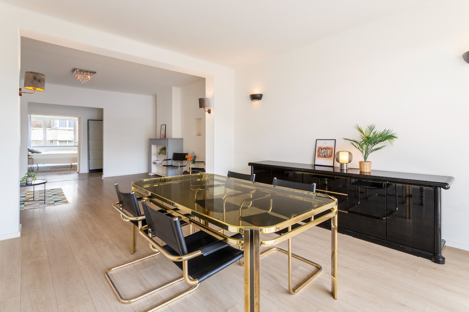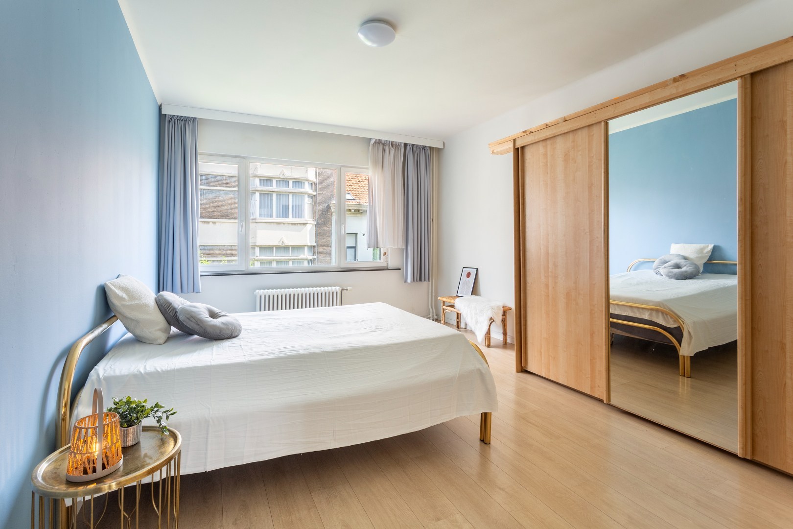 Het appartement bevindt zich op de 3de verdieping van een kleinschalig gebouw (lift voor langere tijd buiten gebruik). Je betreedt de woning via de inkomhal met handige berging. De ruime, lichtrijke woonkamer vormt het hart van het appartement. De geïnstalleerde keuken is uitgerust met gasvuur met dampkap, oven, koelkast, afwasmachine en een aansluiting voor een wasmachine. De vernieuwde badkamer beschikt over een badkamermeubel, ligbad met douche en toilet. Verder zijn er twee ruime slaapkamers. Bruikbare vloeroppervlakte volgens EPC: 108m². Kortom, ideaal voor alleenstaanden, koppels en gezinnetjes die op zoek zijn naar de nodige ruimte!