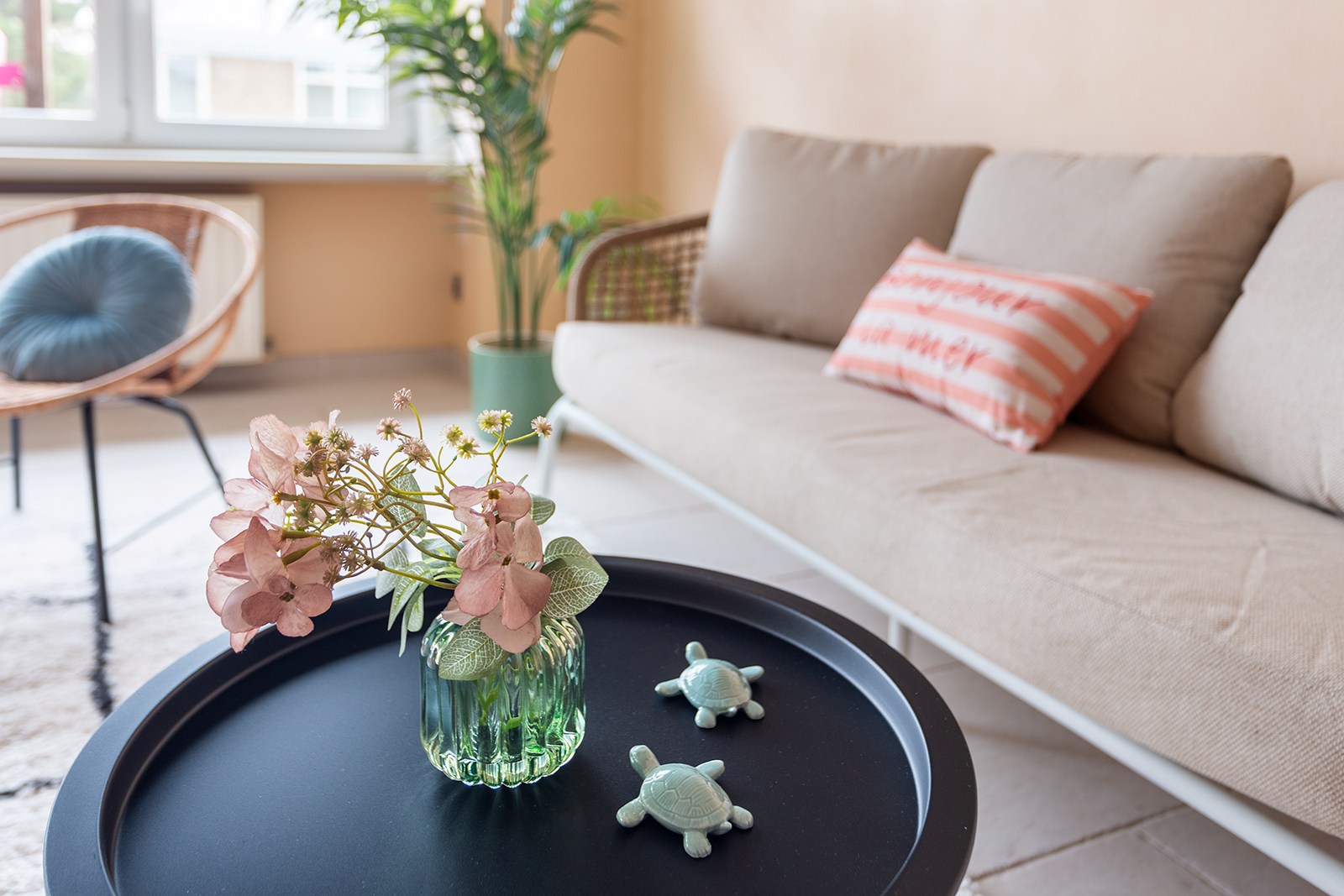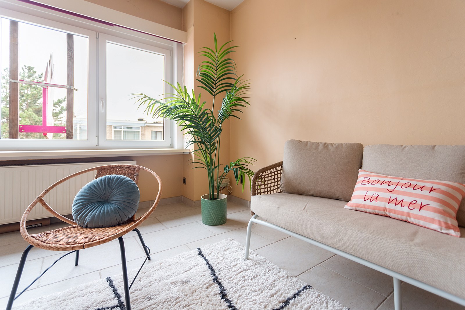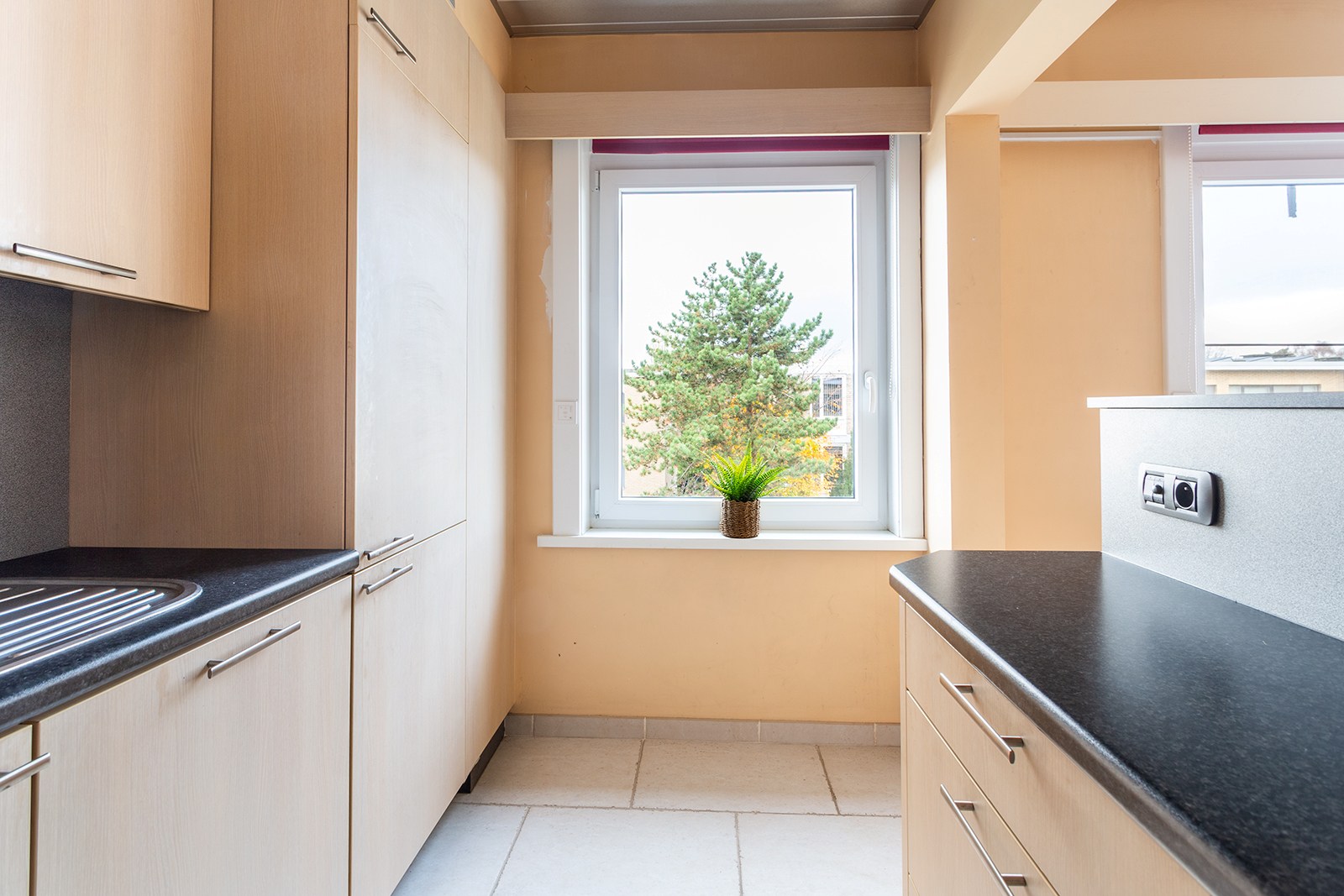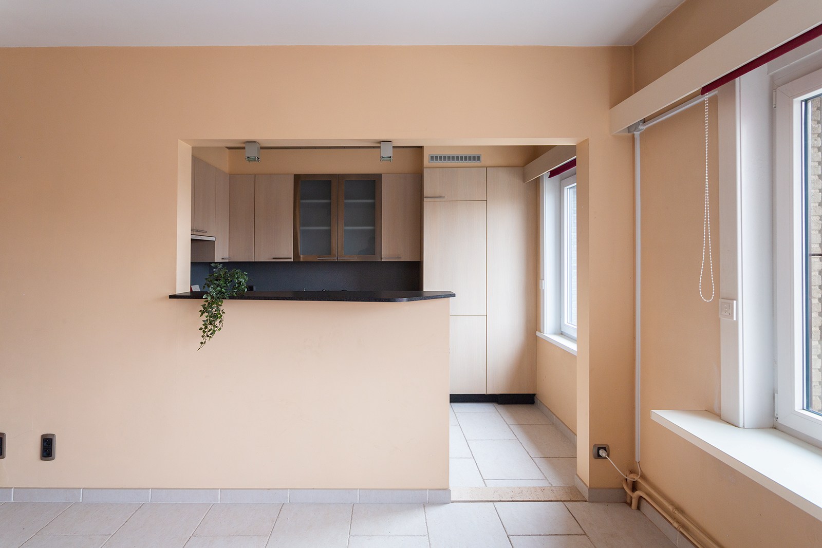 Via de inkomhal heb je toegang tot alle ruimtes. De leefruimte voelt licht en aangenaam aan en is, net zoals de rest van het appartement, afgewerkt met een onderhoudsvriendelijke tegelvloer. Aansluitend bevindt zich de keuken, die in zeer goede staat verkeert en praktisch is ingericht. Het appartement telt twee volwaardige slaapkamers; één daarvan biedt toegang tot een compact maar gezellig terras, ideaal voor een momentje buitenlucht.