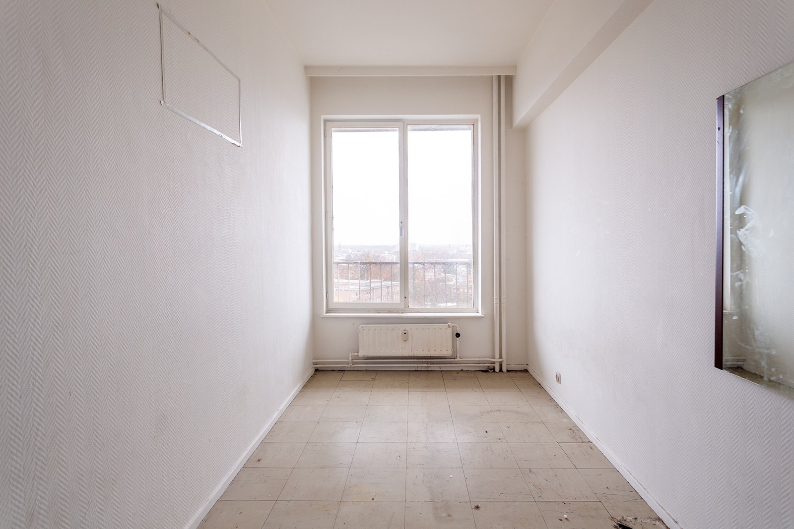 Het appartement bevindt zich op de twaalfde verdieping verdieping en geniet dankzij de gunstige oriëntatie en de vele ramen van een overvloed aan natuurlijk daglicht, wat bijdraagt aan een uiterst aangename sfeer. Bij binnenkomst kom je in de centrale hal, die toegang biedt tot alle ruimtes en is voorzien van talrijke bergkasten en een vestiaire, ideaal om spullen op te bergen.