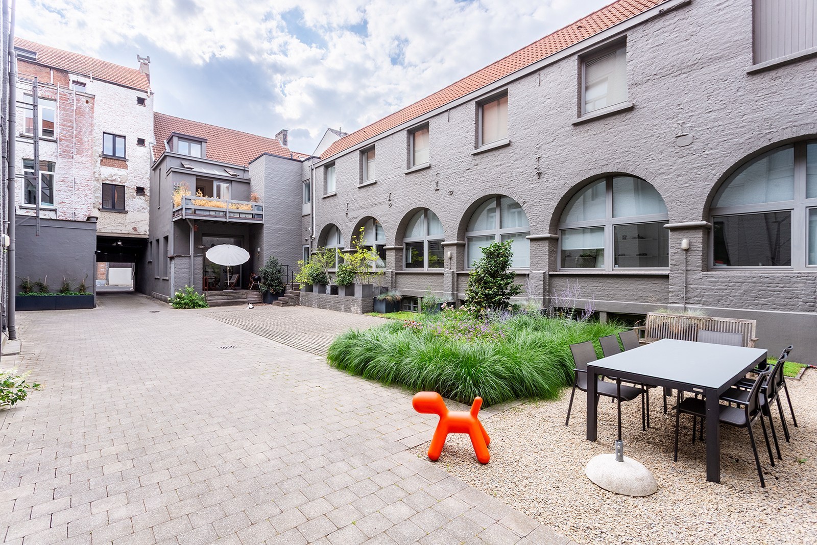 Op de binnenplaats vinden we circa 122m² buitenruimte bestaande uit een groot terras en parkeerplaatsen. Een oase van rust in het midden van de stad!