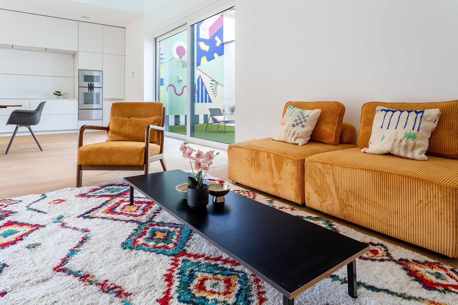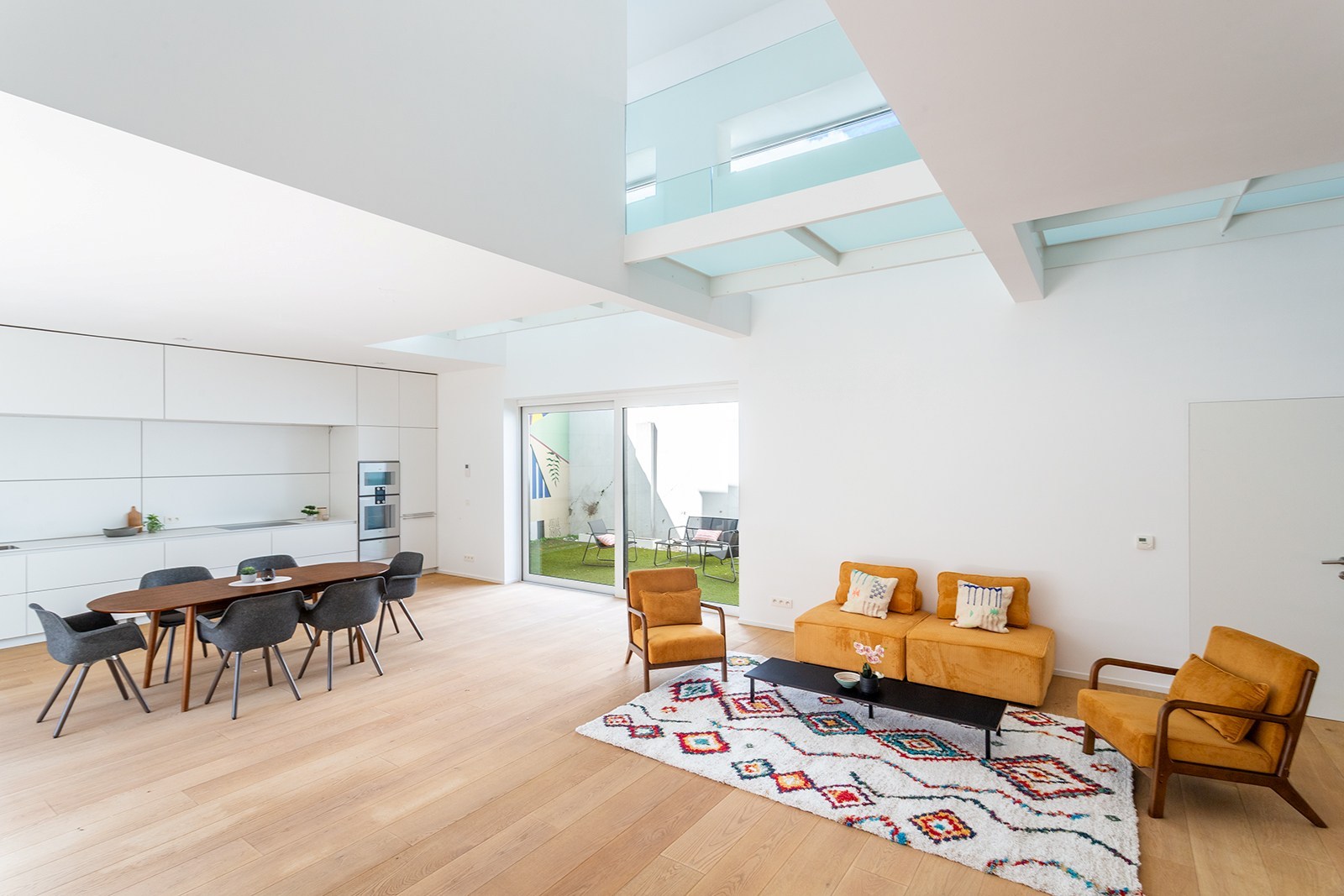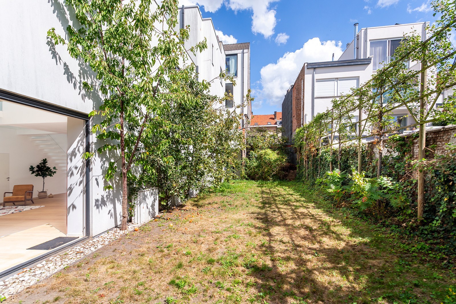 Dit eigendom is dankzij de indeling en volumes uiterst multifunctioneel en bijgevolg ideaal voor de combinatie wonen/werken. We betreden de woning via een imposante inrit met hoge plafonds waarna we op de afgesloten binnenkoer terechtkomen. De ruime leefruimte met open, volledig ingerichte keuken baadt in het licht dankzij de vele ramen. Aansluitend heeft u toegang tot het terras enerzijds en de tuin met naastgelegen bouwgrond van 170 m² (mogelijkheid tot aankoop) anderzijds.