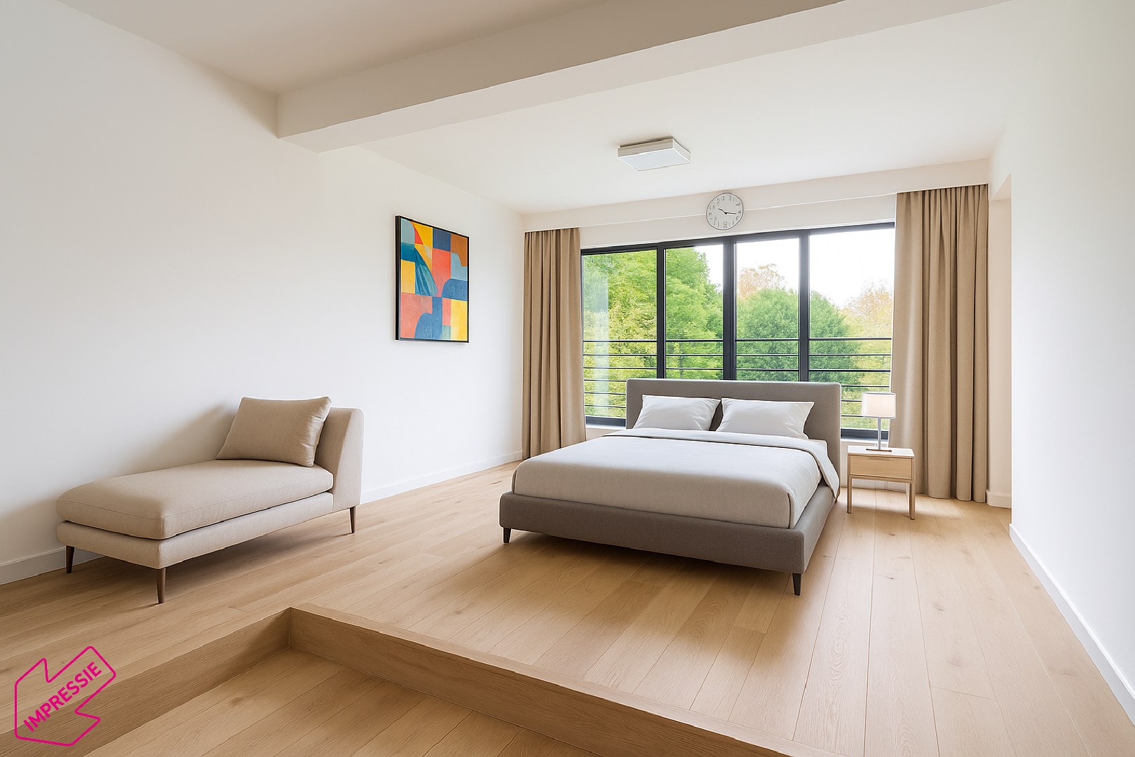 Om de privacy van de bewoners te respecteren, werd de publiciteit uitgewerkt met impressiefoto’s: enkel de vloerafwerking en de inrichting werden virtueel aangepast. Werkelijke foto’s van de woning en de exacte locatie zijn op aanvraag beschikbaar.