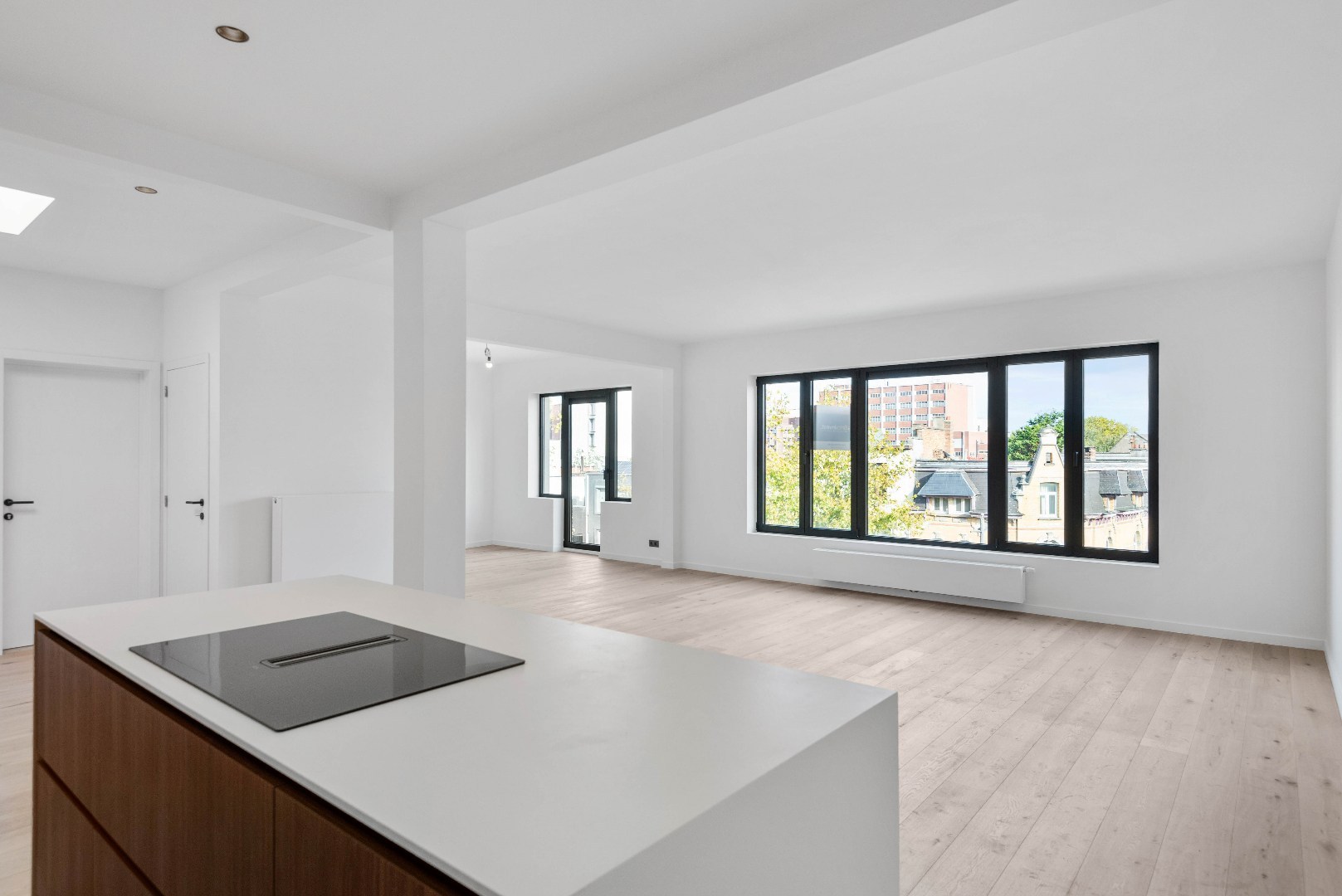 • Nieuw buitenschrijnwerk in aluminium met hoogrendementsbeglazing en ventilatieroosters.