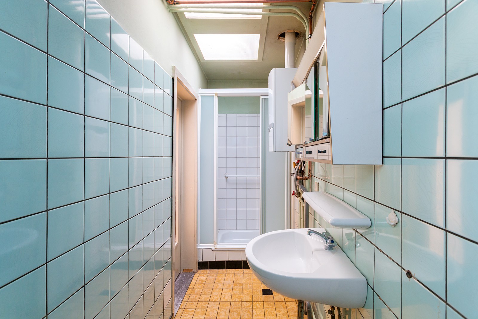 Achter de keuken bevindt zich de badkamer.