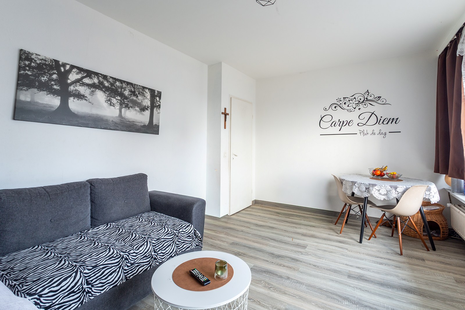 Via de inkomhal bereikt u de verschillende ruimtes van het appartement. De lichte leefruimte geeft rechtstreeks toegang tot het terras van ca. 8 m², waar u in alle rust kan genieten van het uitzicht.