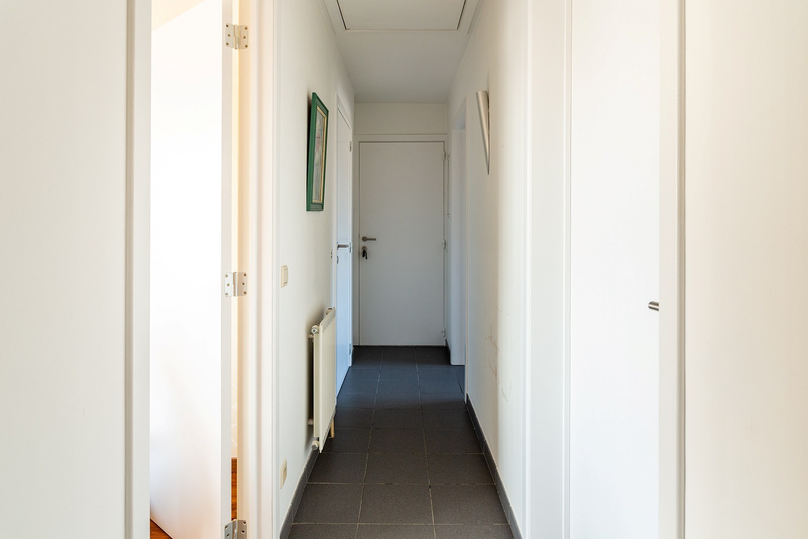 Het appartement bevindt zich op de tweede verdieping van een kleinschalig en verzorgd gebouw. Via de inkomhal bereik je vlot alle ruimtes van het appartement.