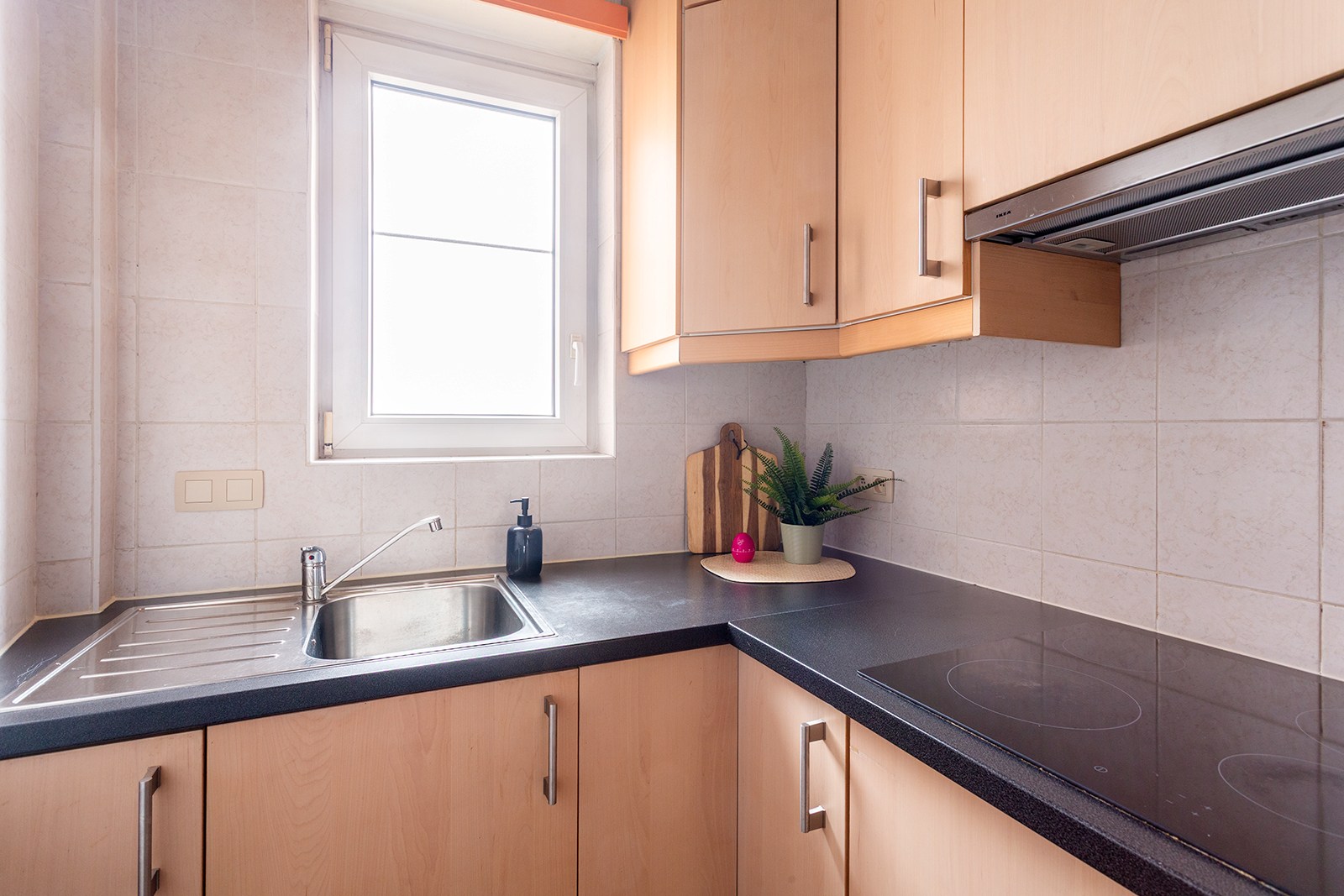 Achteraan bevinden zich de keuken en de badkamer, die afzonderlijk afsluitbaar zijn met een deur. Bewoonbare oppervlakte volgens vermelding in EPC.