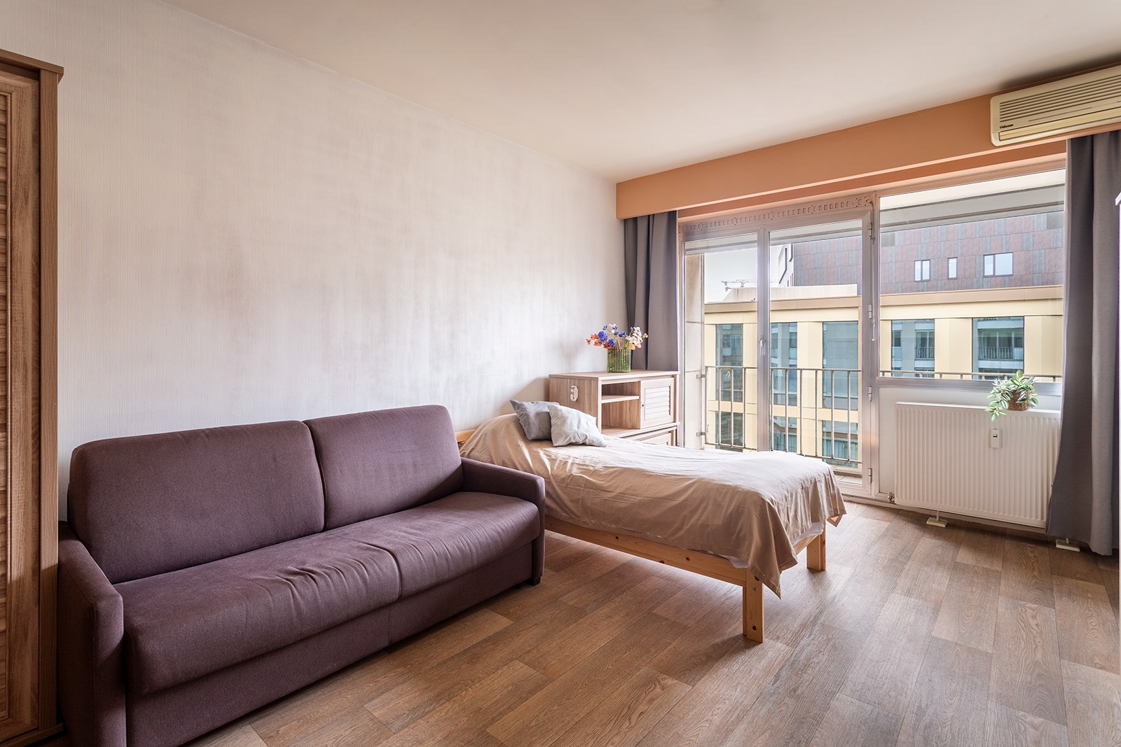 Deze studio is gelegen op een locatie voor wie mobiliteit en bereikbaarheid een must is. Openbaar vervoer (tram, trein en de Antwerpse 'Velokes') bevindt zich in de onmiddellijke omgeving, net als winkels en scholen. Het Centraal Station ligt letterlijk om de hoek en er is een vlotte verbinding naar het stadscentrum. Met een mobi-score van 9,6/10 is dit een uiterst centrale ligging.