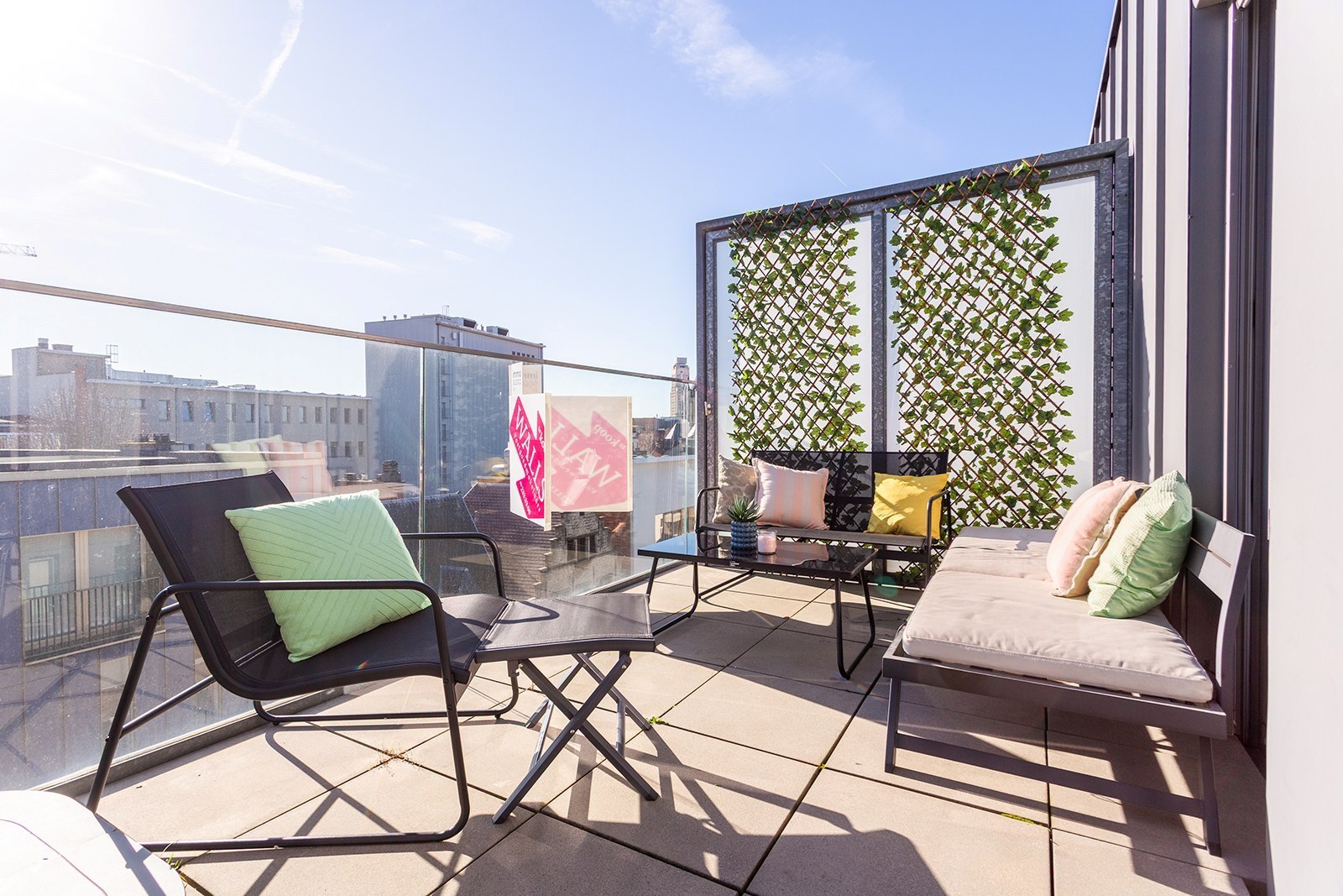 Dankzij deze centrale ligging geniet u volop van het bruisende stadsleven, terwijl u bovenaan het gebouw in alle rust thuiskomt. Ook op vlak van mobiliteit zit u hier uitstekend: alle vormen van openbaar vervoer bevinden zich op wandelafstand en met de wagen bereikt u in een mum van tijd de belangrijkste in- en uitvalswegen.